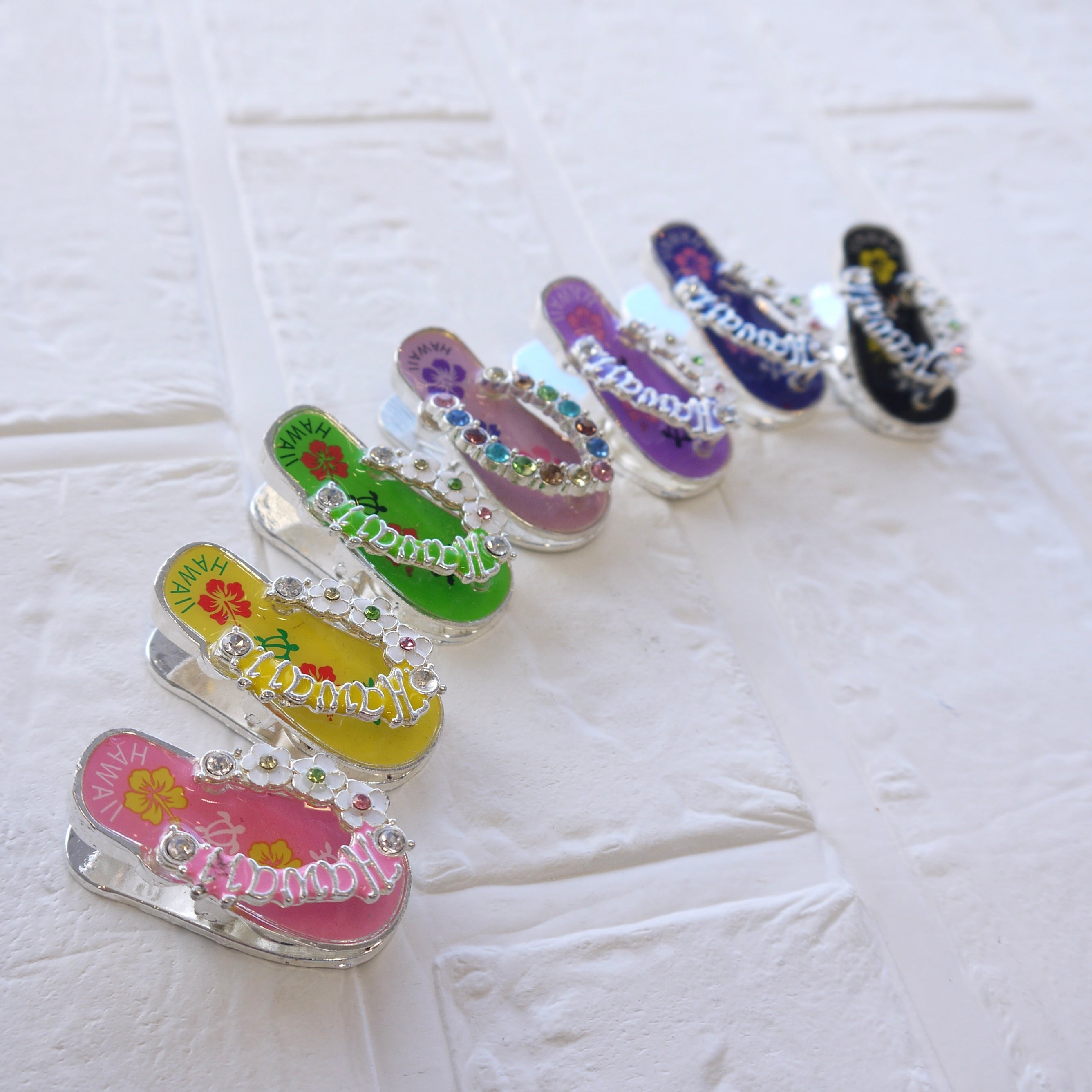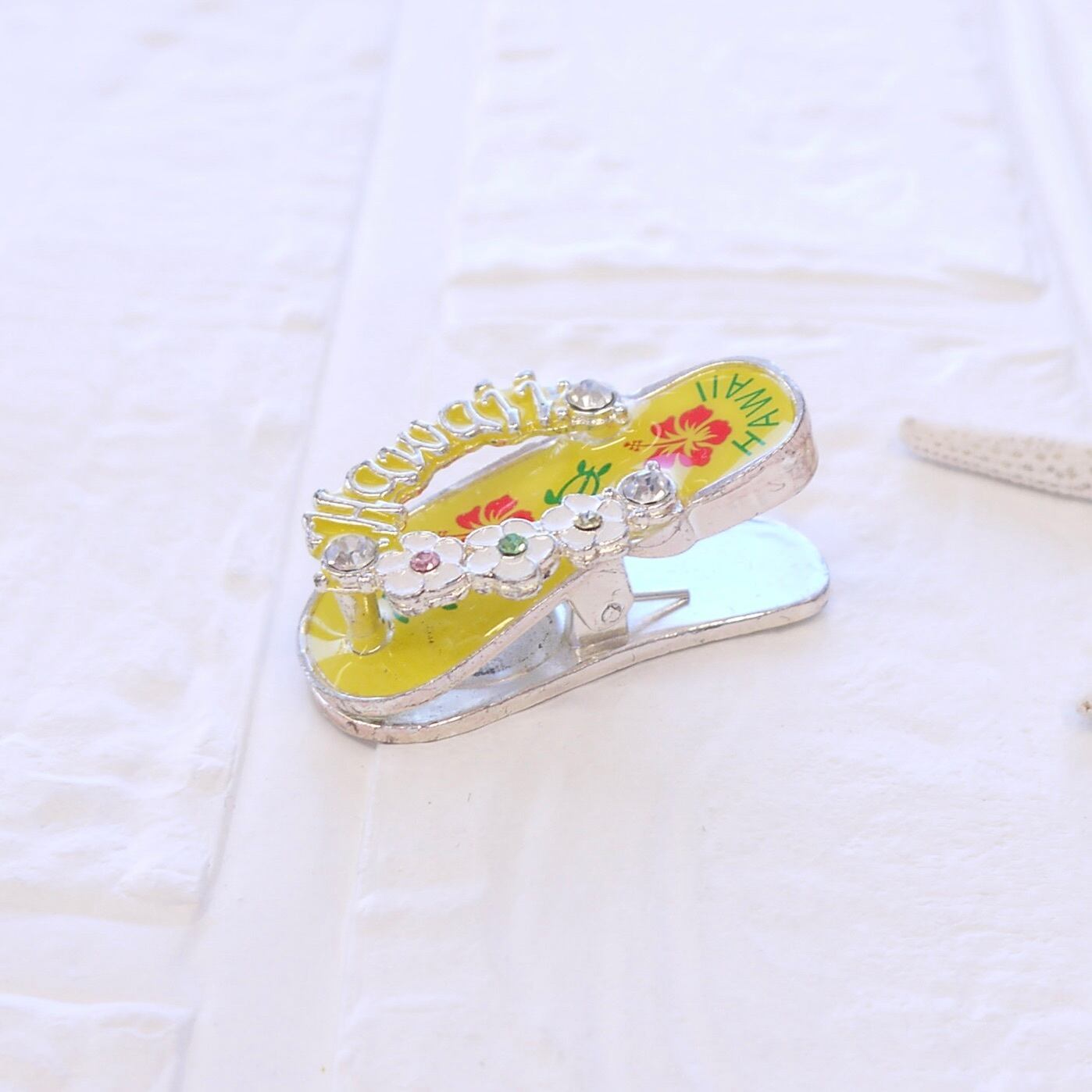 ★ハワイ直輸入★ビーチサンダル クリップ マグネット/キッチンマグネット/ハワイ磁石<KG-119/イエロー ホヌ ハイビスカス>