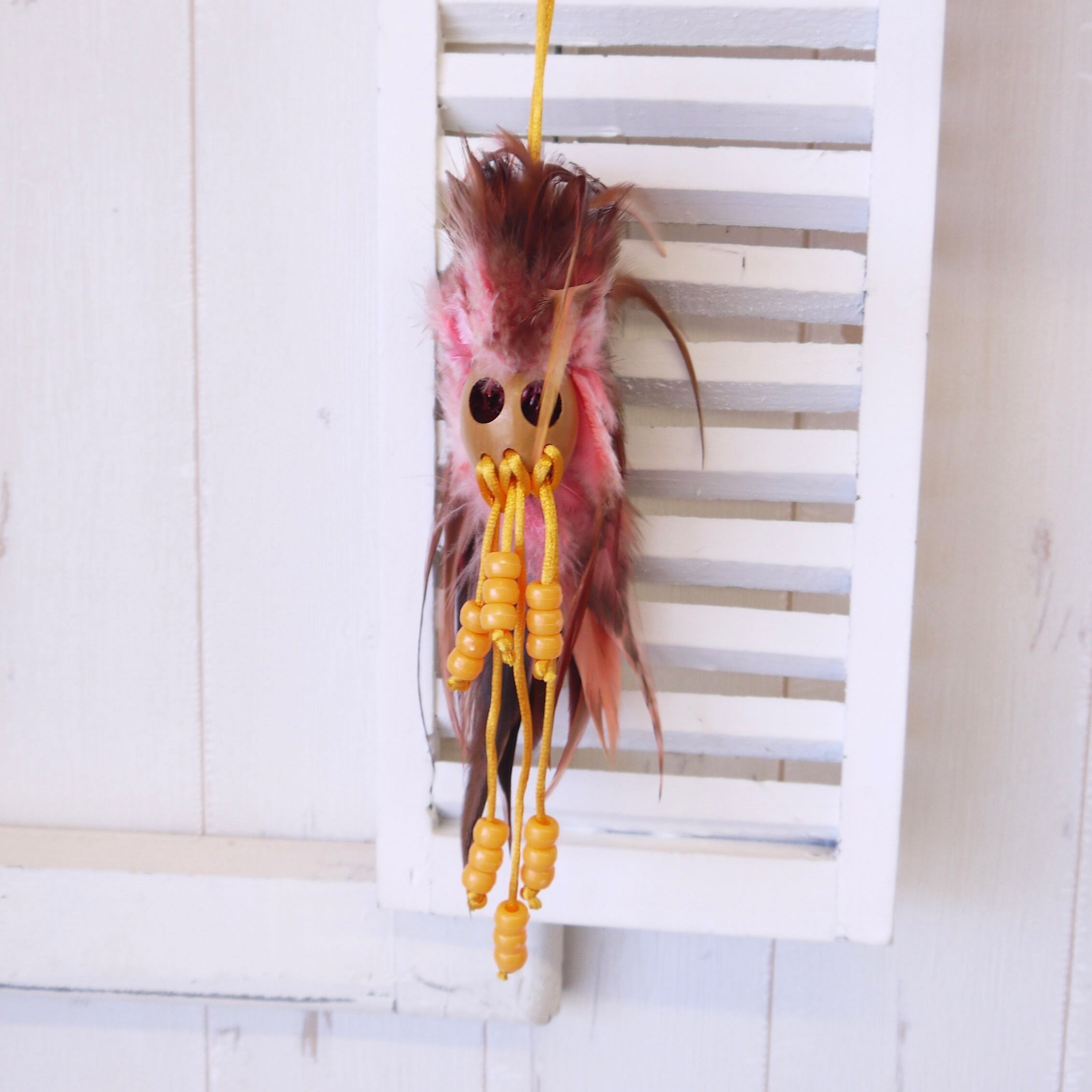 天然素材のハンドメイド品のため、1点づつ顔や羽の広がり方が異なります。