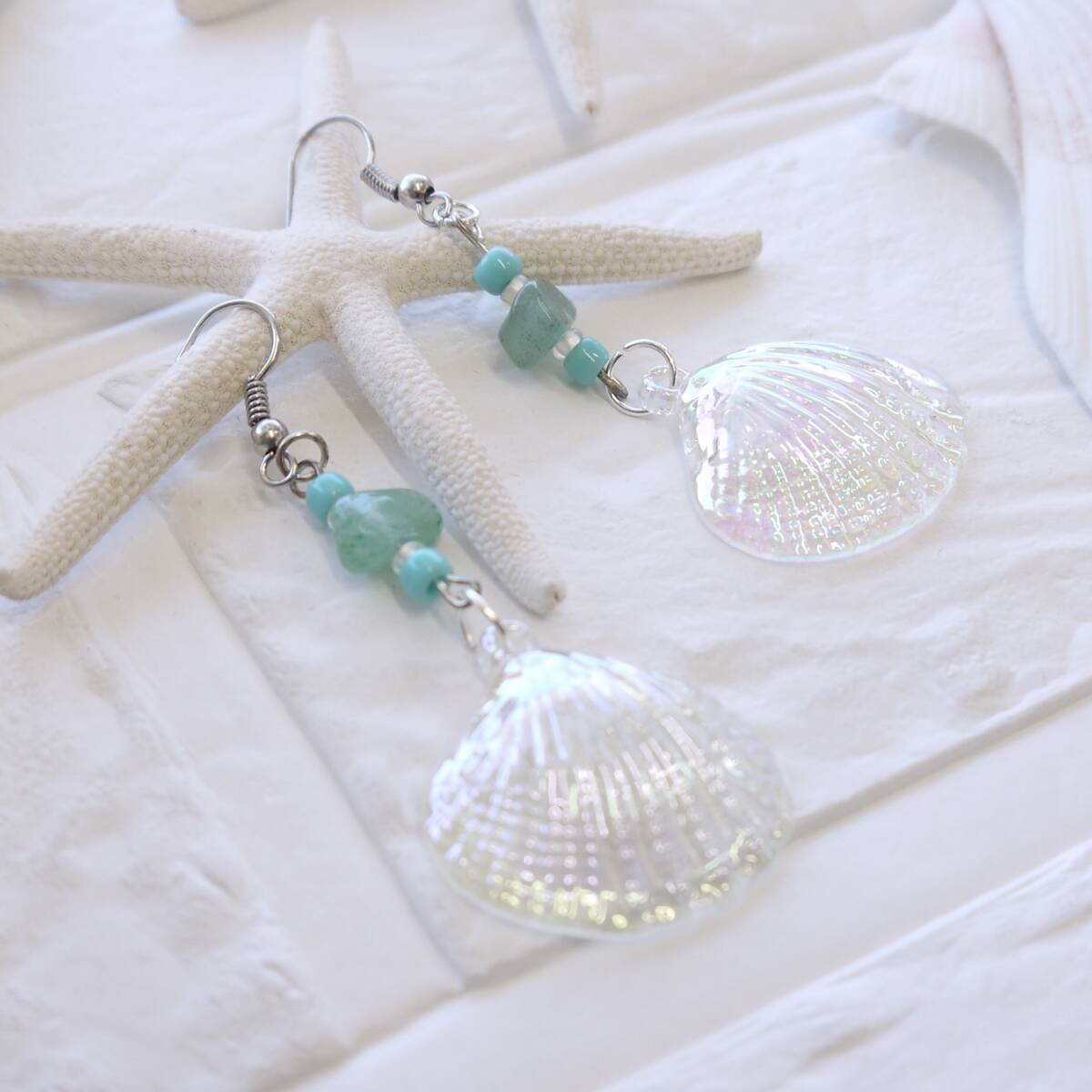 ★ハワイアン雑貨★ハワイアンピアス/ロングピアス/夏ピアス/ビーチピアス<18 オーロラシェル >