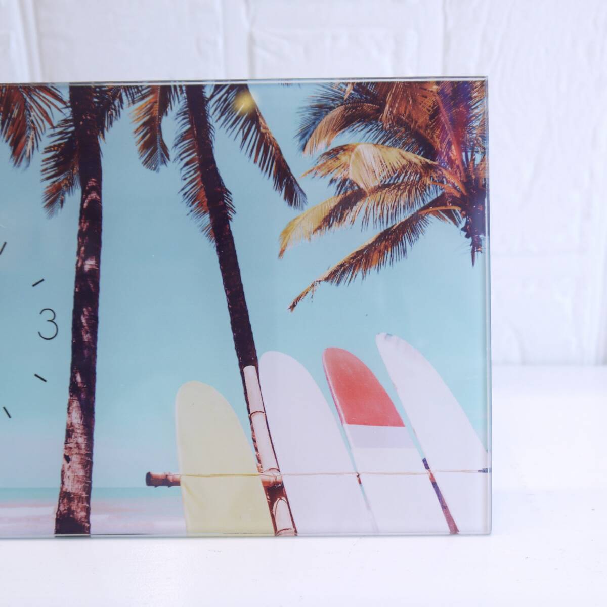 ★ハワイアン雑貨★ハワイ 時計/ガラスアートピクチャー/デスククロック/ビーチ/ヤシの木<サーフボード>