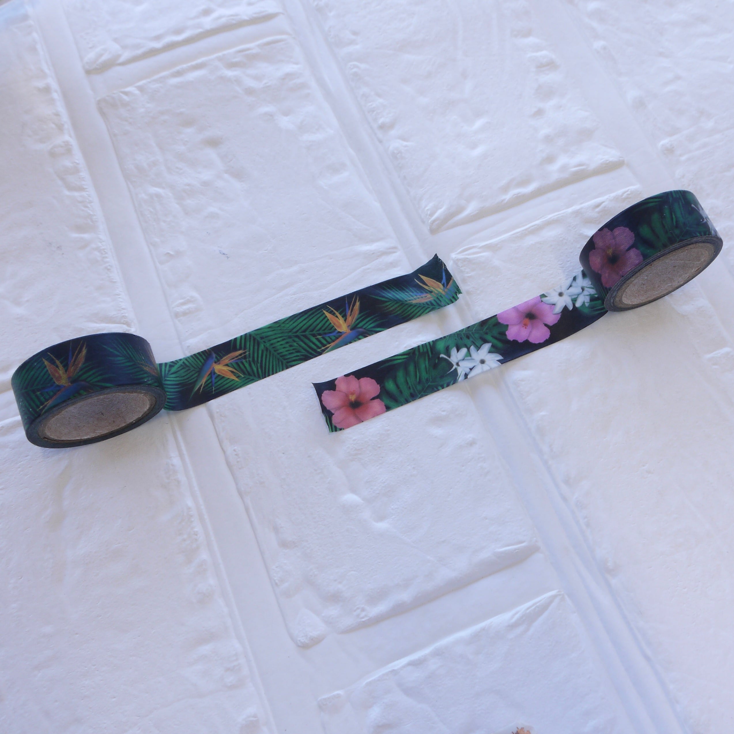 ☆ハワイ直輸入☆マスキングテープ/WASHI TAPE/ハイビスカス&ティアレ/バードオブパラダイス/マステ2個セット<ブラック>
