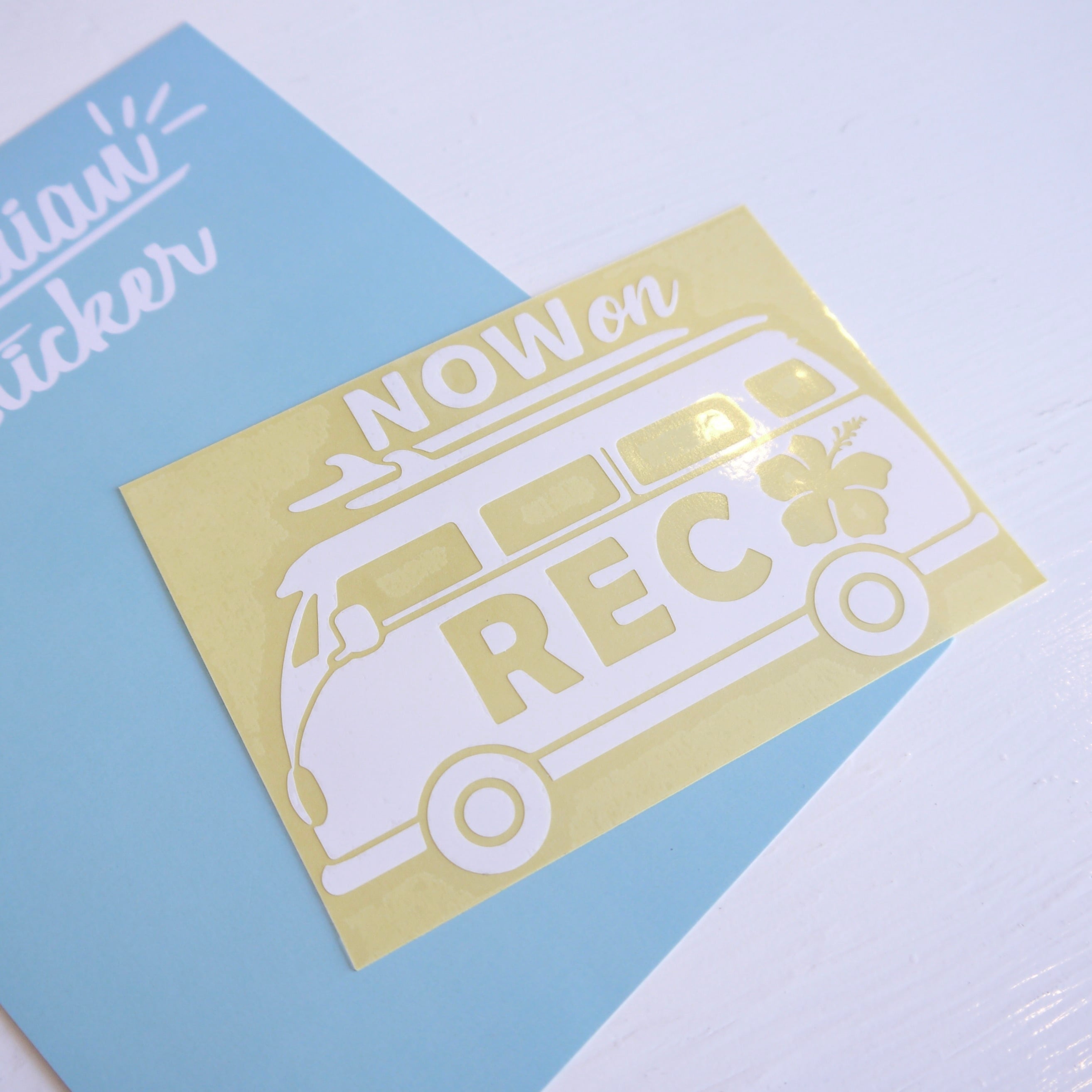 ★ハワイアン 雑貨★ NOW on REC/ドライブレコーダー/録画中ステッカー/バスドライブ/転写 ステッカー/VW<ホワイト>