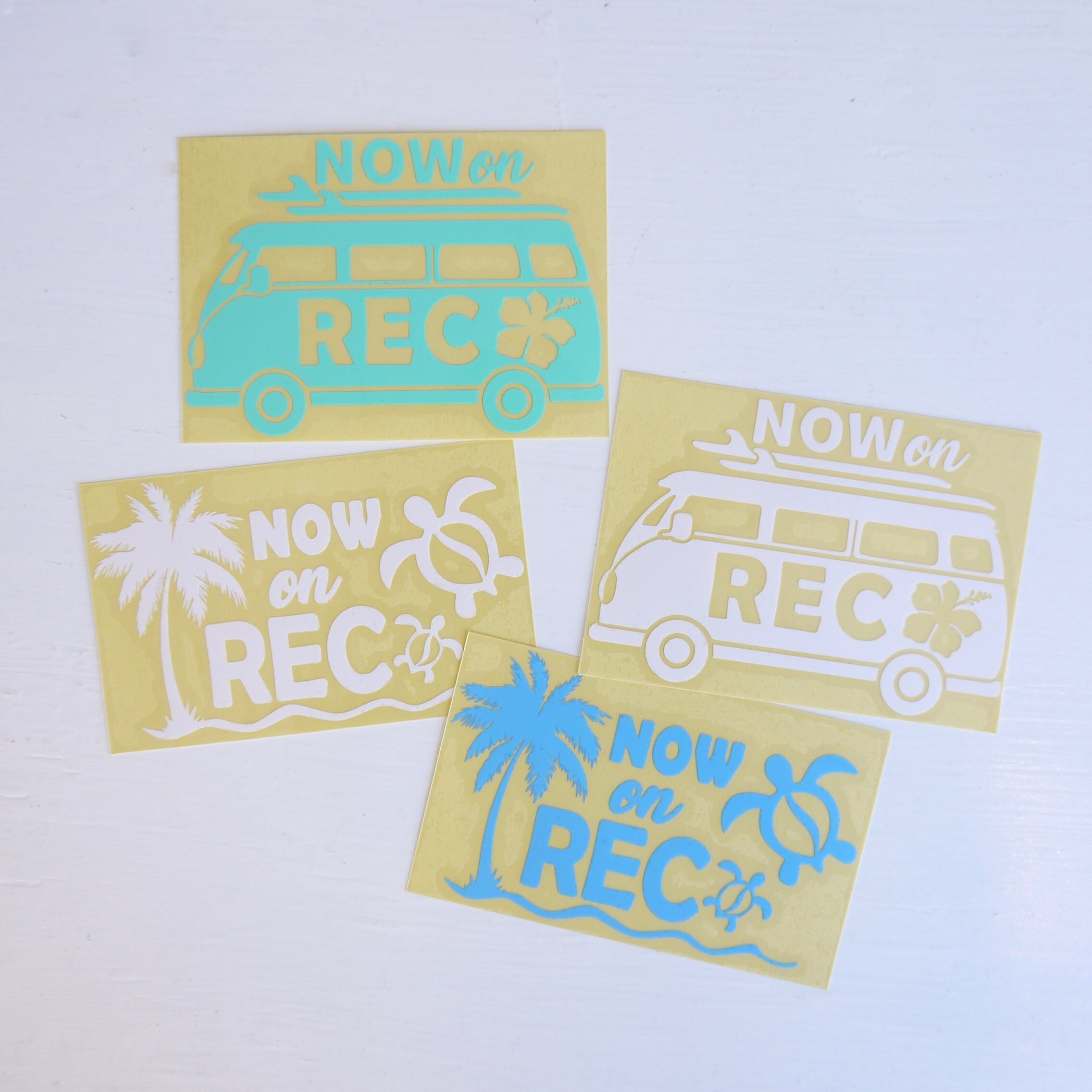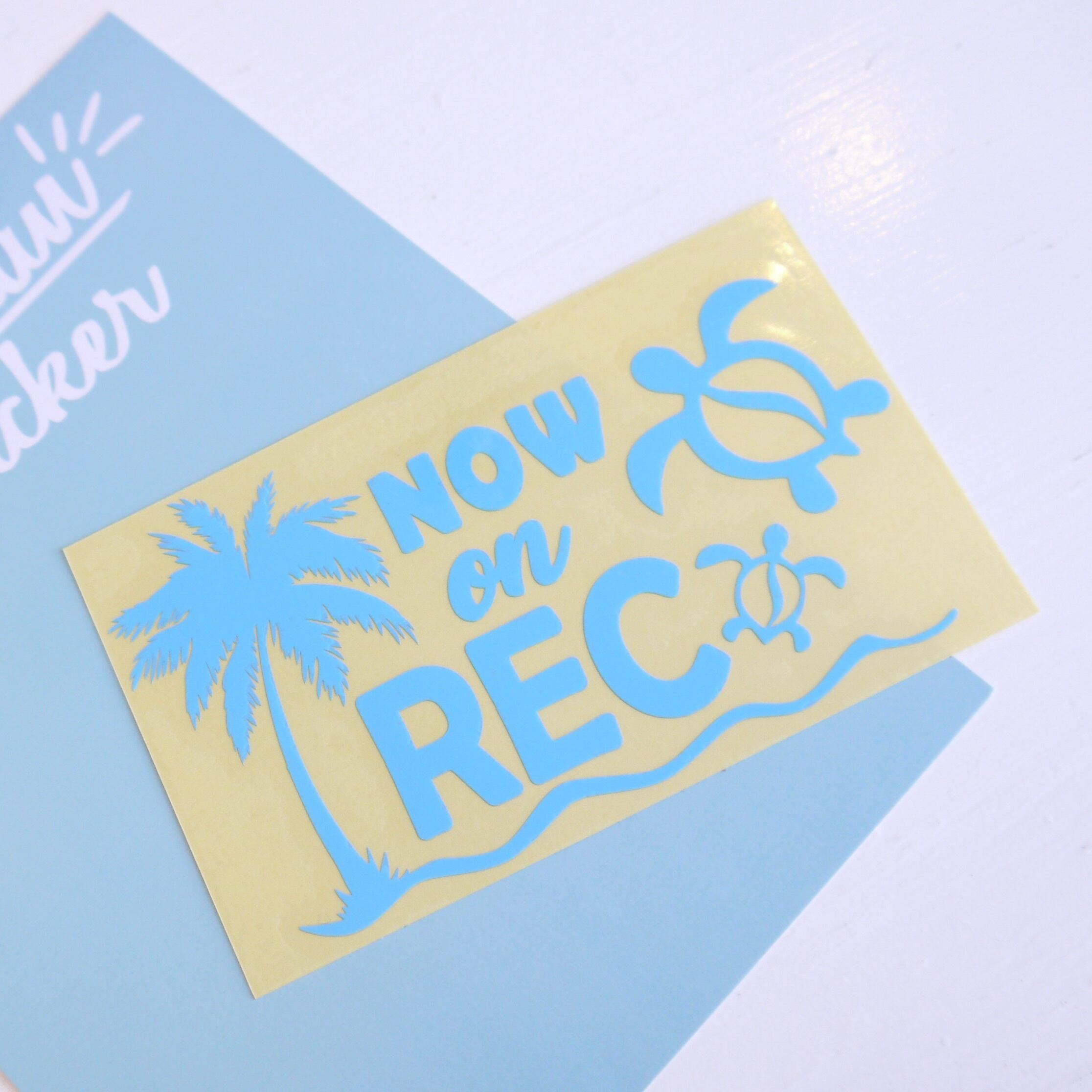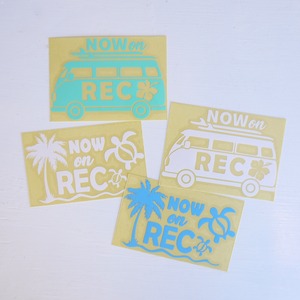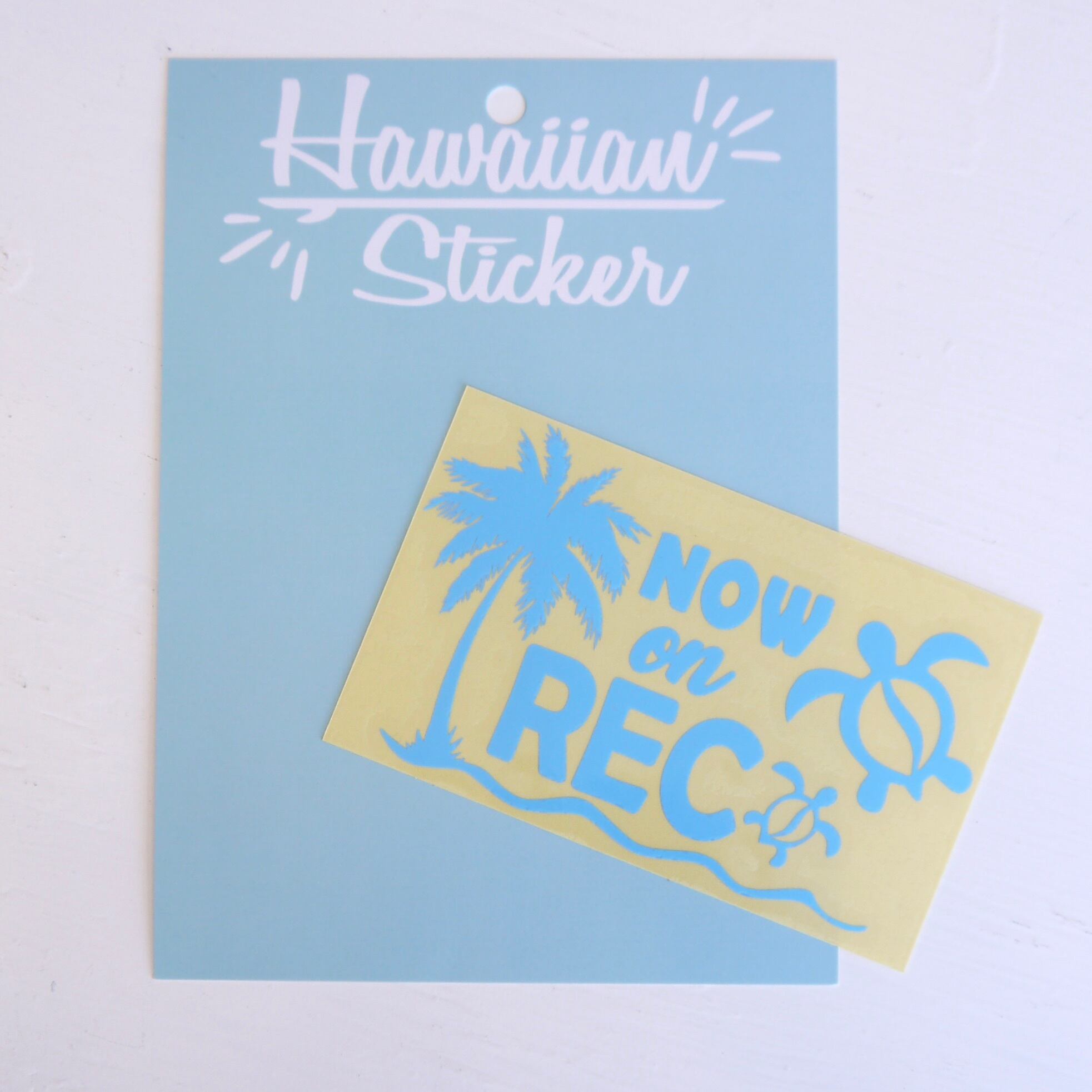 ★ハワイアン 雑貨★ NOW on REC/ドライブレコーダー/録画中ステッカー/ホヌドライブ/転写 ステッカー/パームツリー<ブルー>