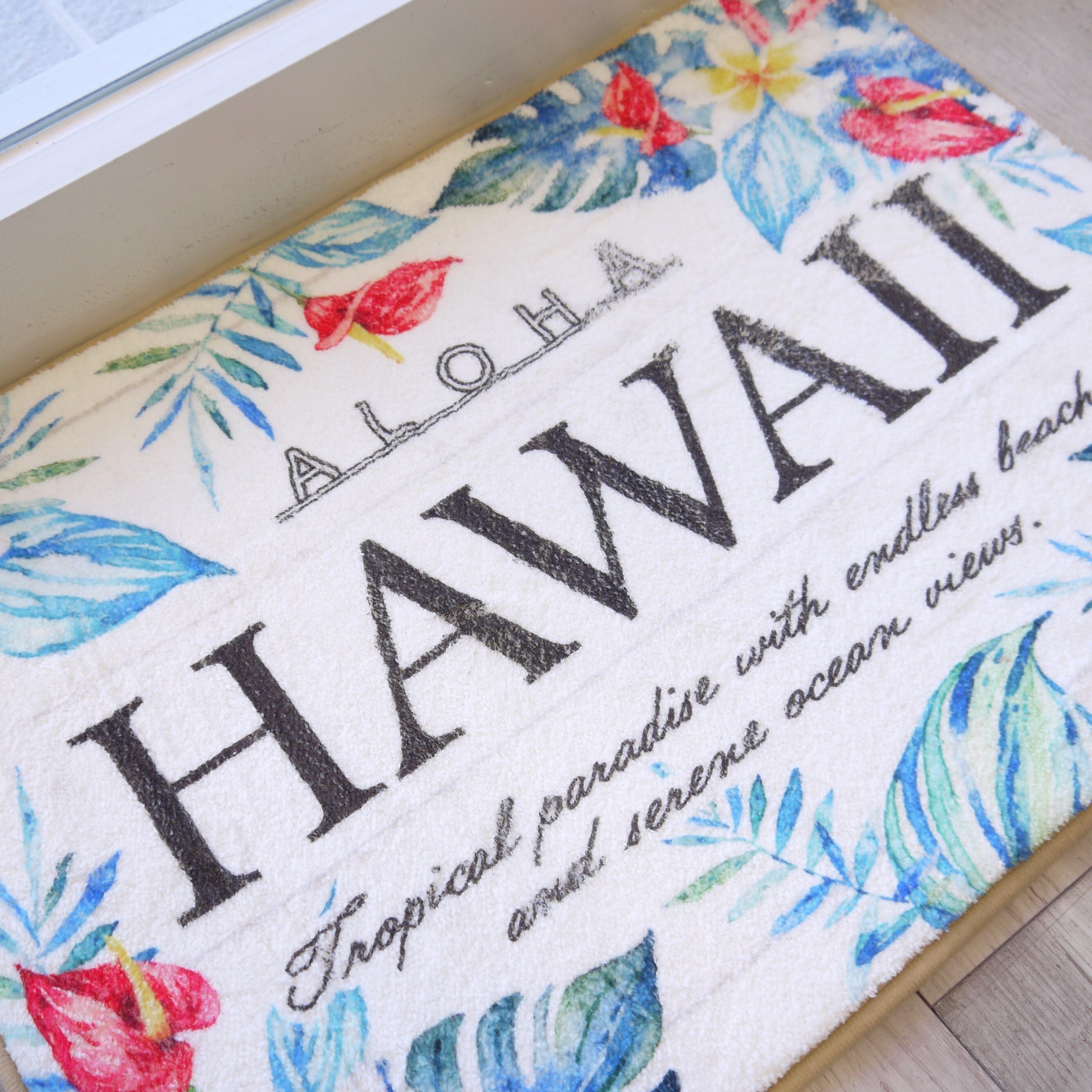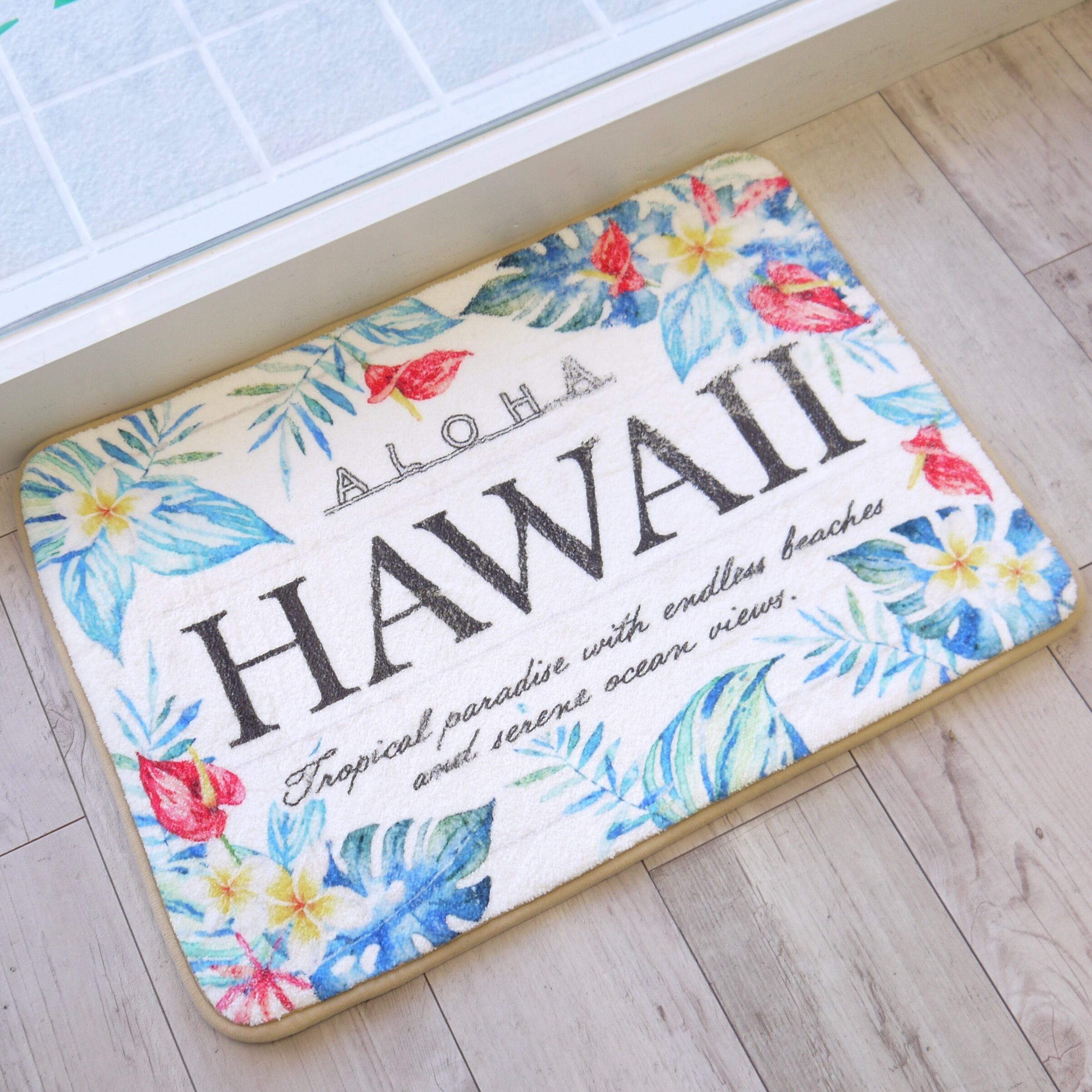 ★ハワイアン雑貨★ふわふわ フロアマット/レアメレマット/バス 玄関 マット/<プルメリア>