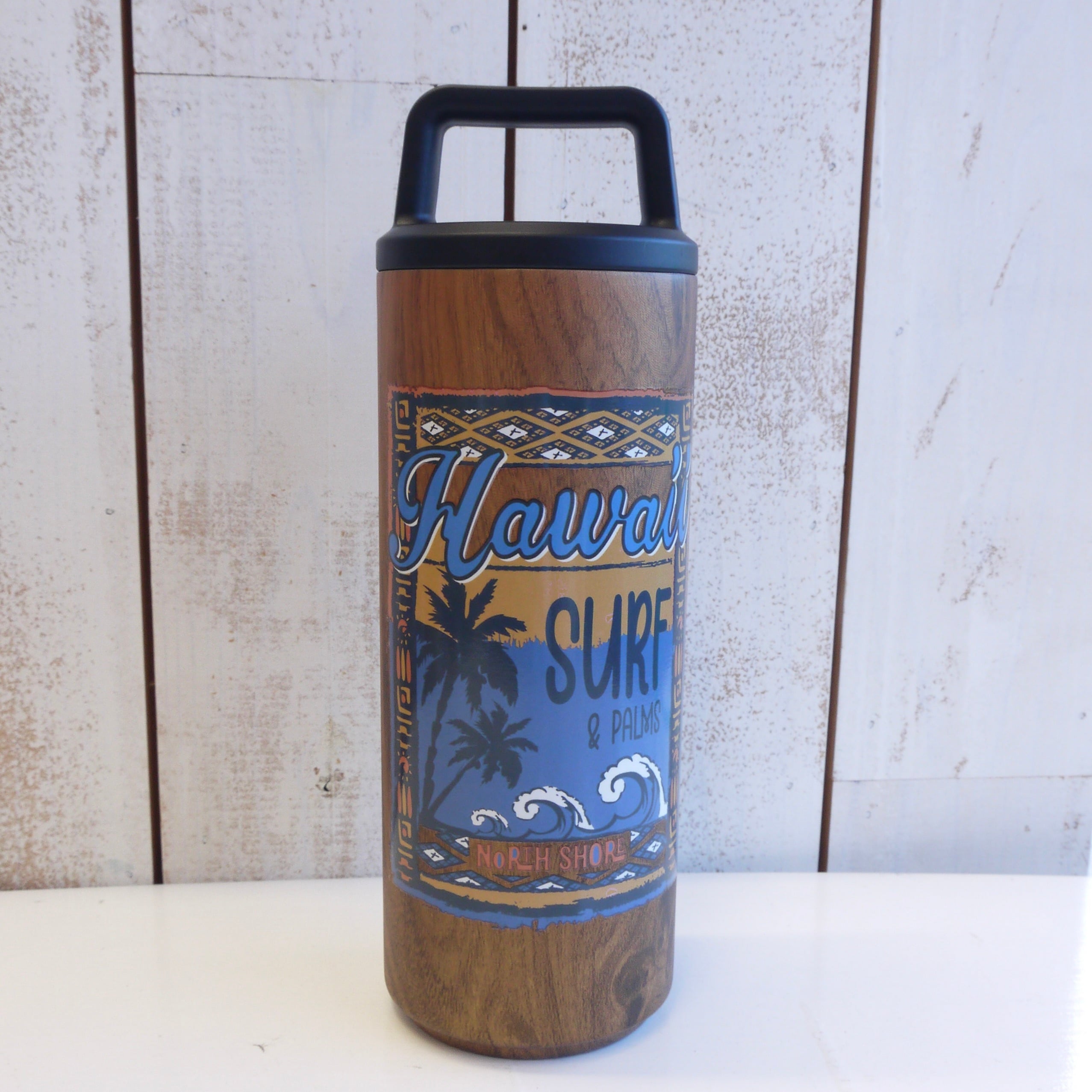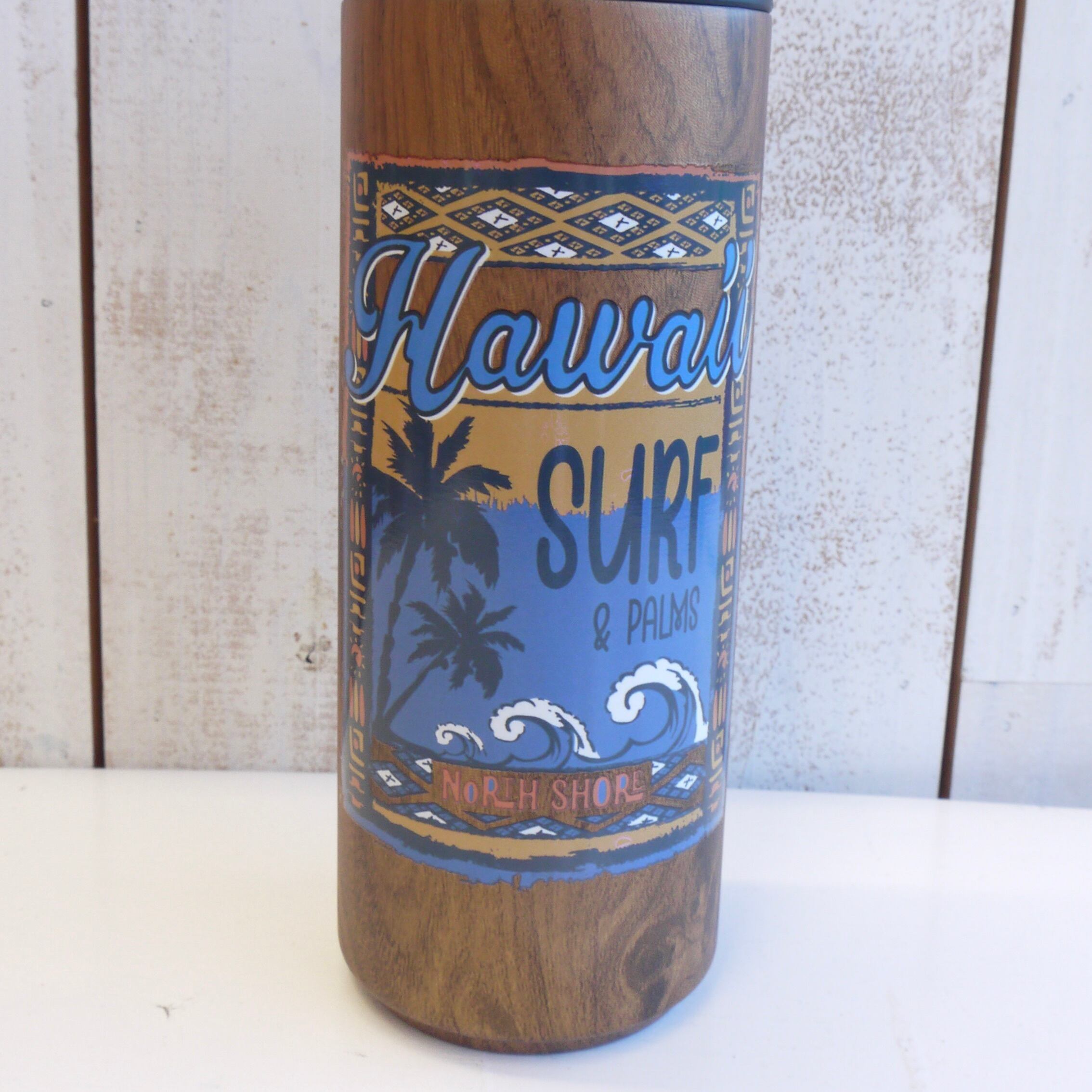 ★ハワイアン雑貨★ヴィンテージ ハワイ ボトル/水筒/タンブラー/ウッド調デザイン/550ml/FDSPカイボトル/サーフ<WAVE>