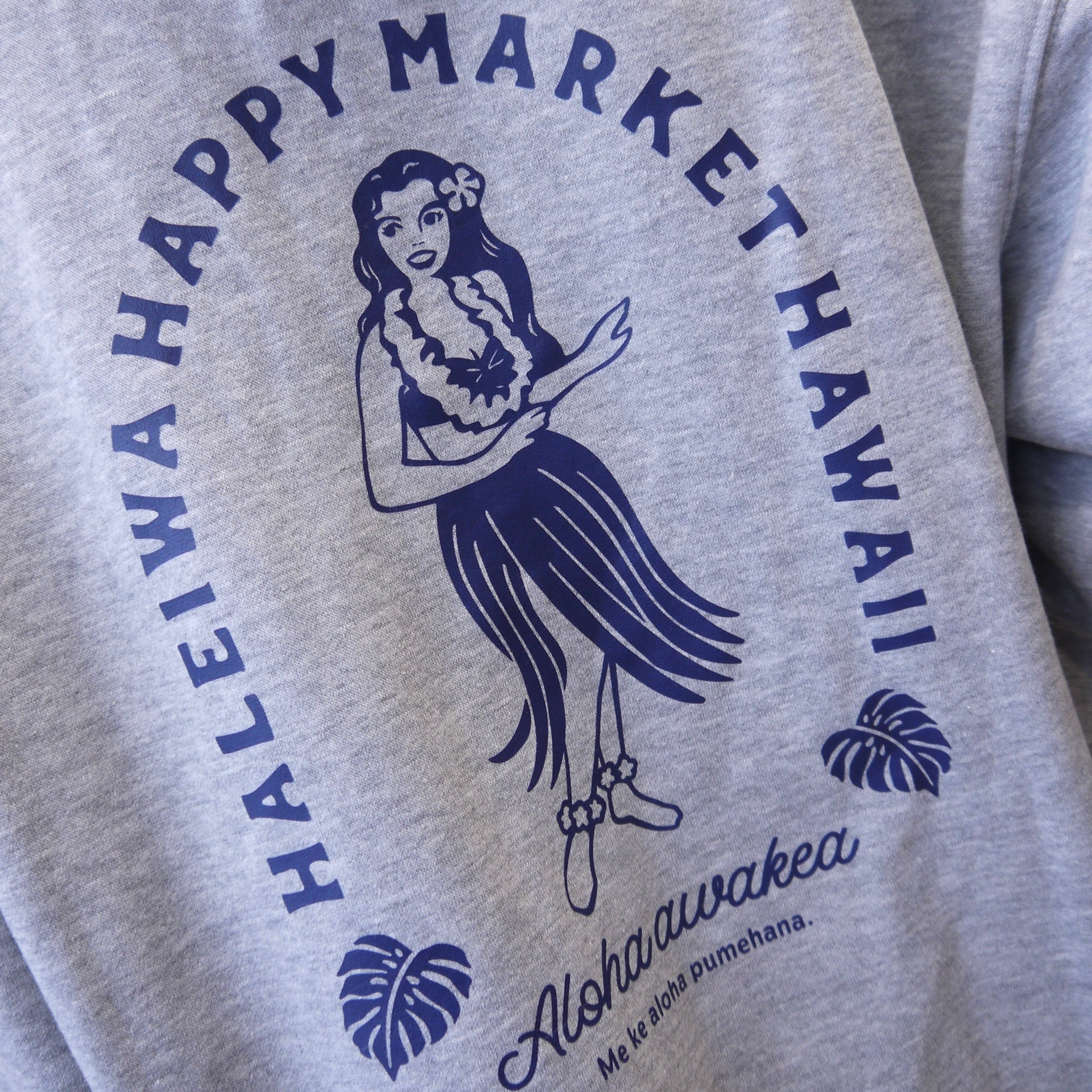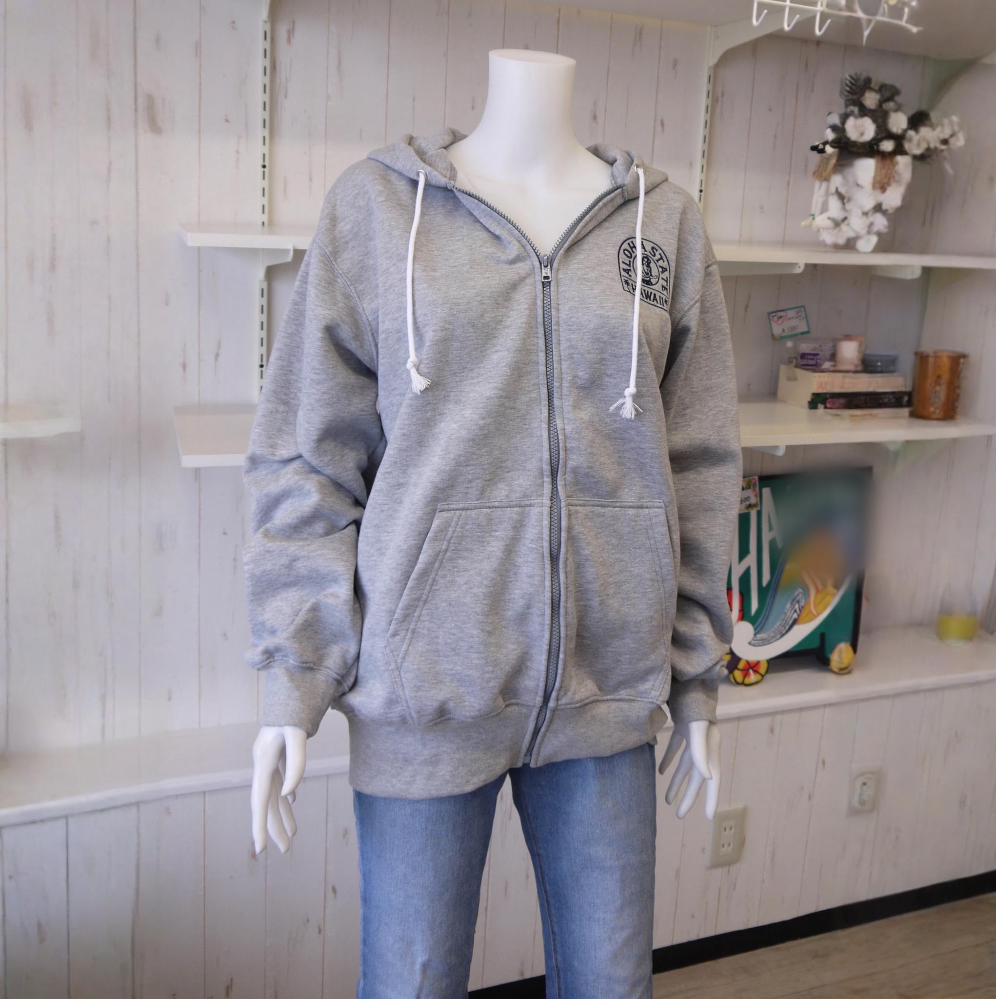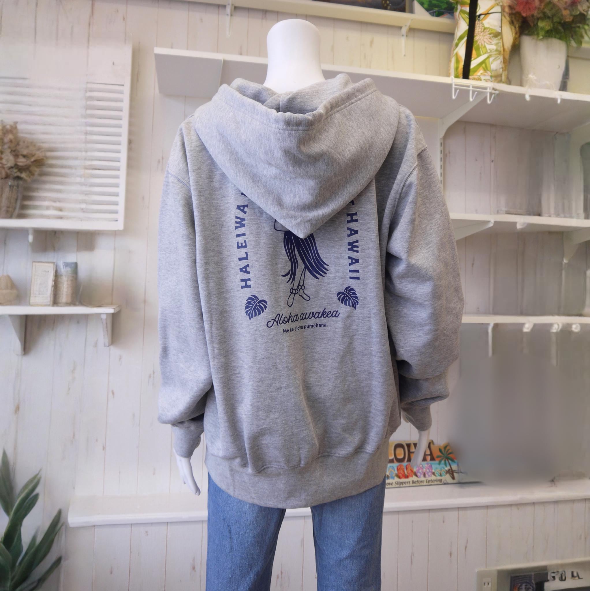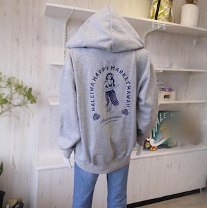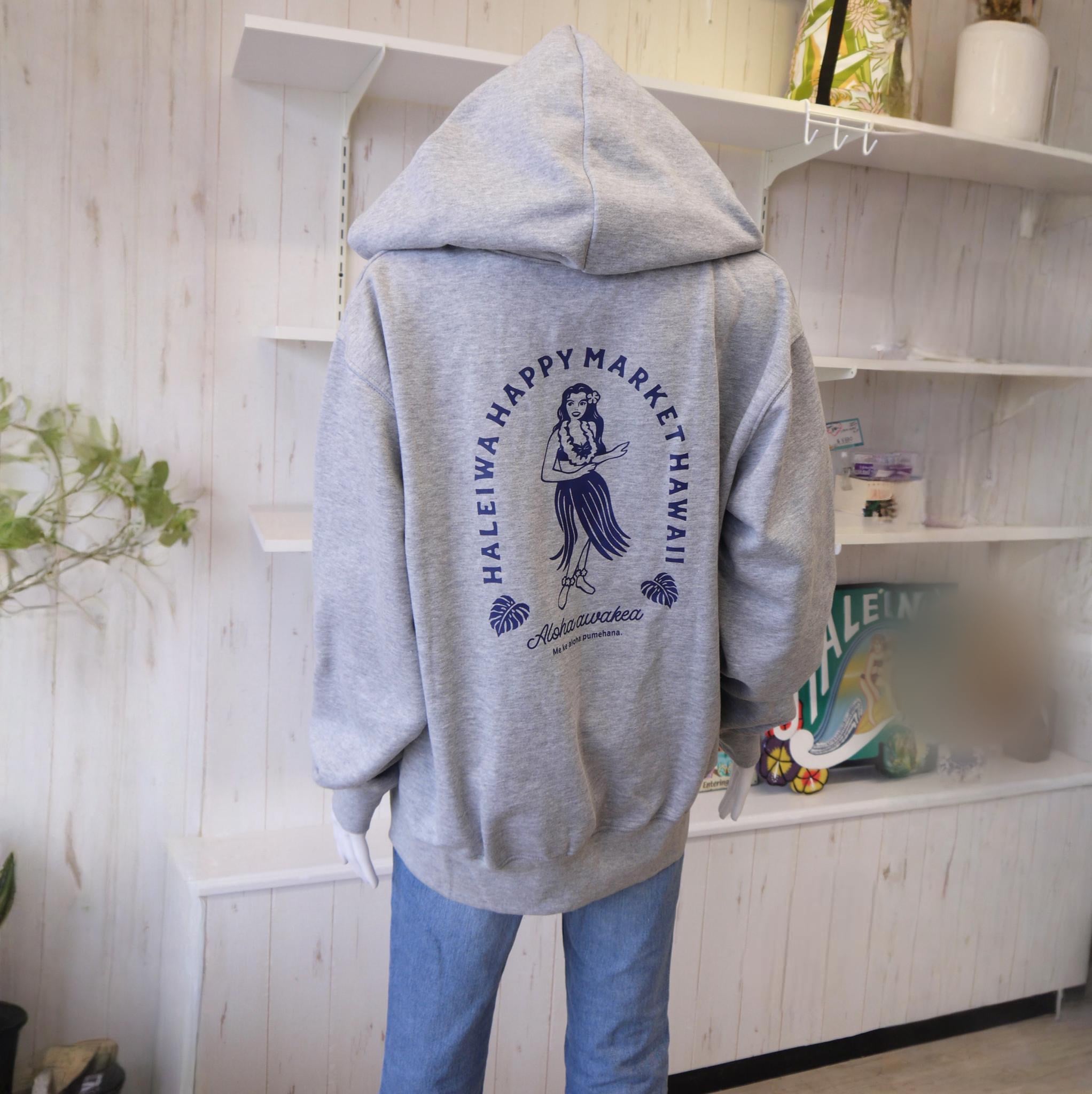 ★ハワイアン雑貨★HALEIWA HAPPY MARKET ジップパーカー コットン100% Lサイズ<グレー>