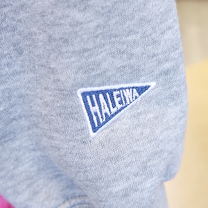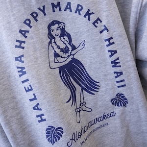 バックにはフラガール、胸元にはALOHA STATEのワンポイント、スリーブにはHALEIWAのパッチ付き♡