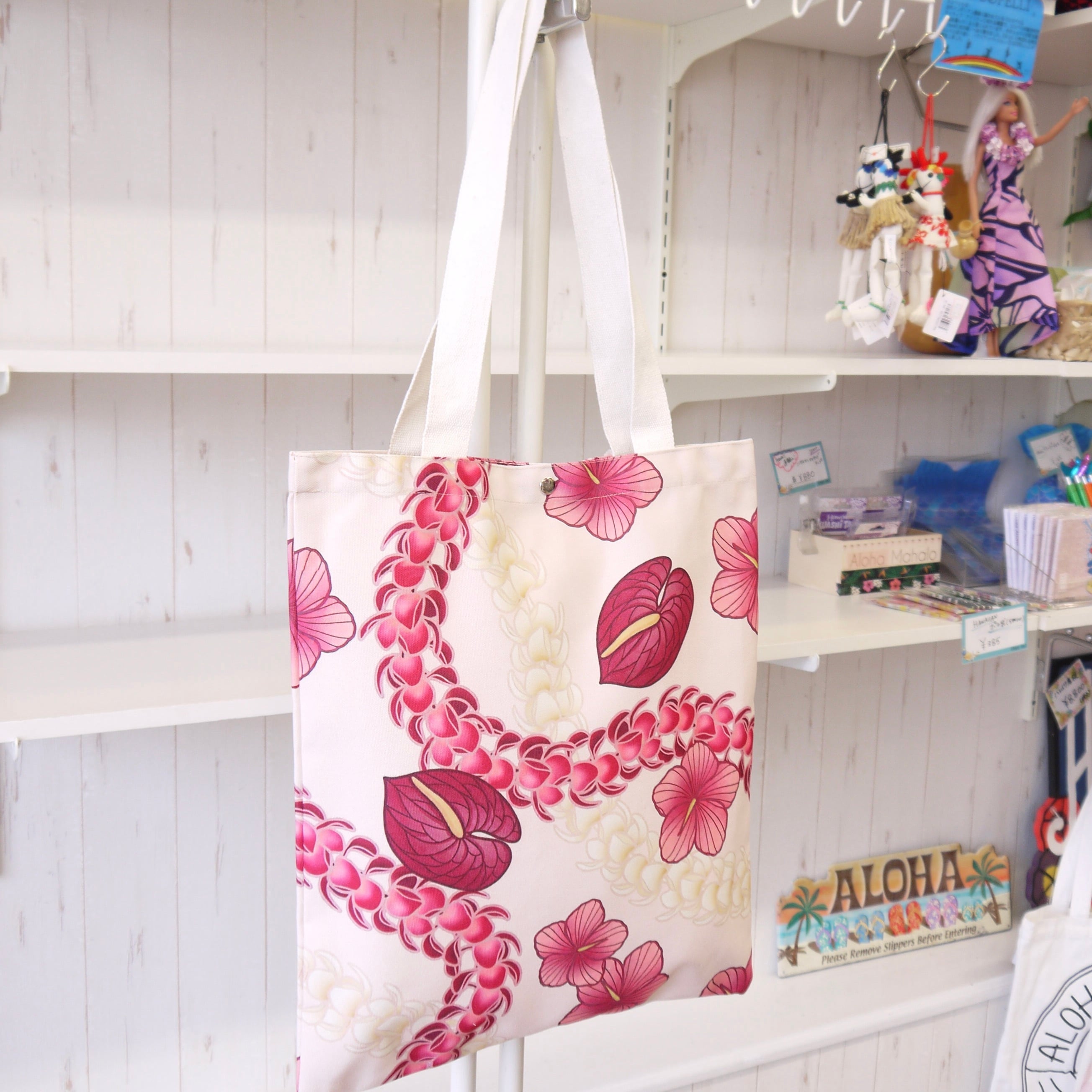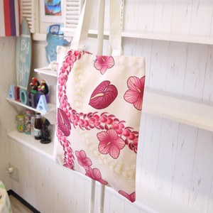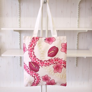 ★ハワイ直輸入 ★ハワイアンデザイン トートバッグ/フラバッグ/レッスンバッグ<ピンク アンスリウム&ハイビスカス&プルメリア>