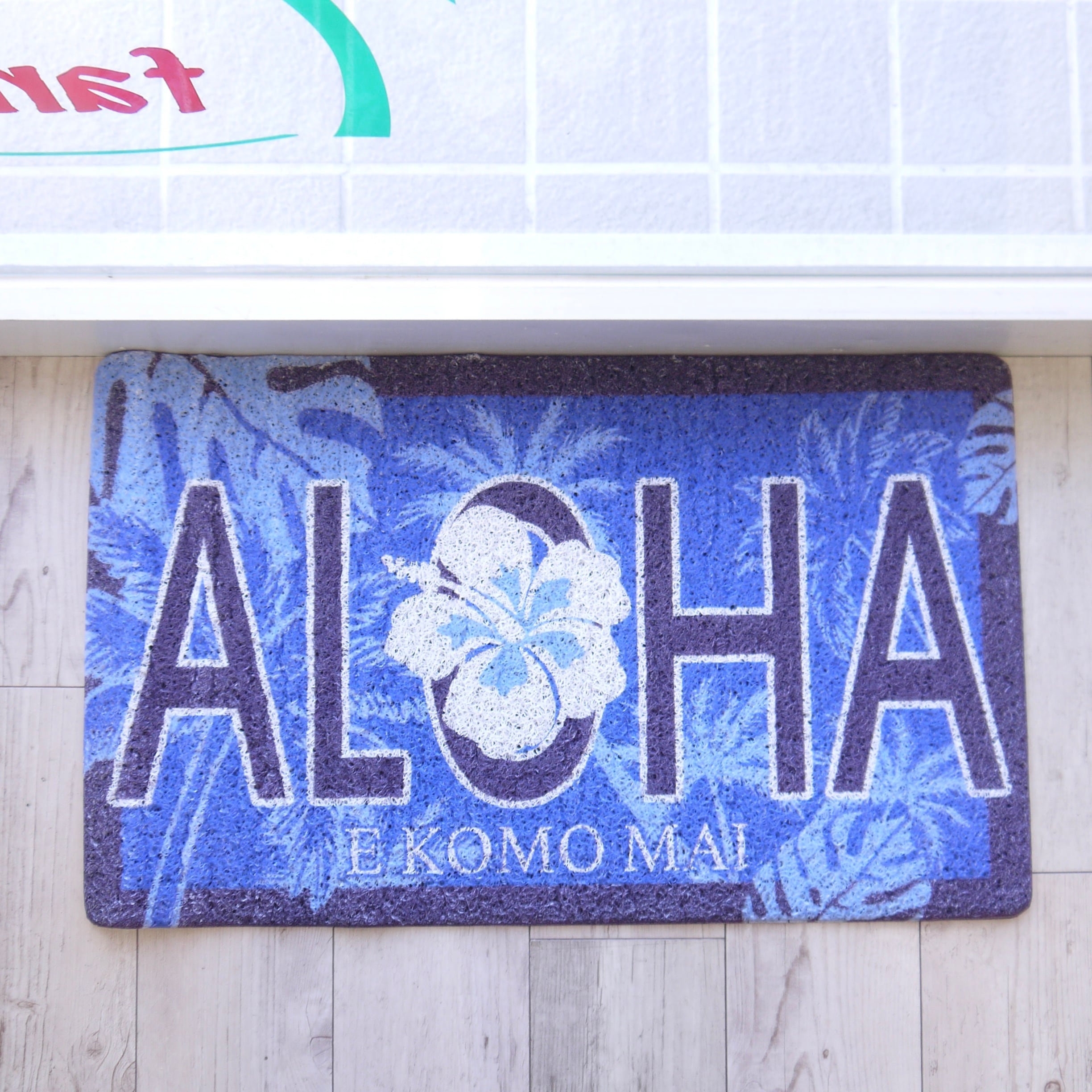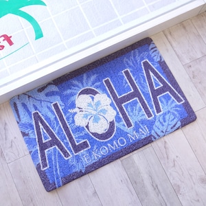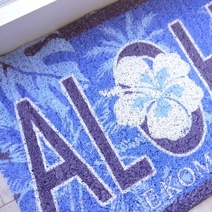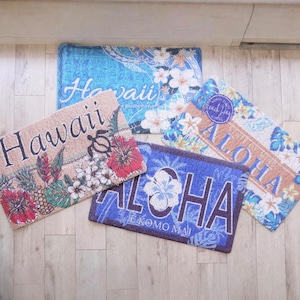 ★ハワイアン雑貨★ウォッシャブルエントランスマット/マイカイマット/屋内屋外兼用マット/ハイビスカス<ネイビー PALM TREE>