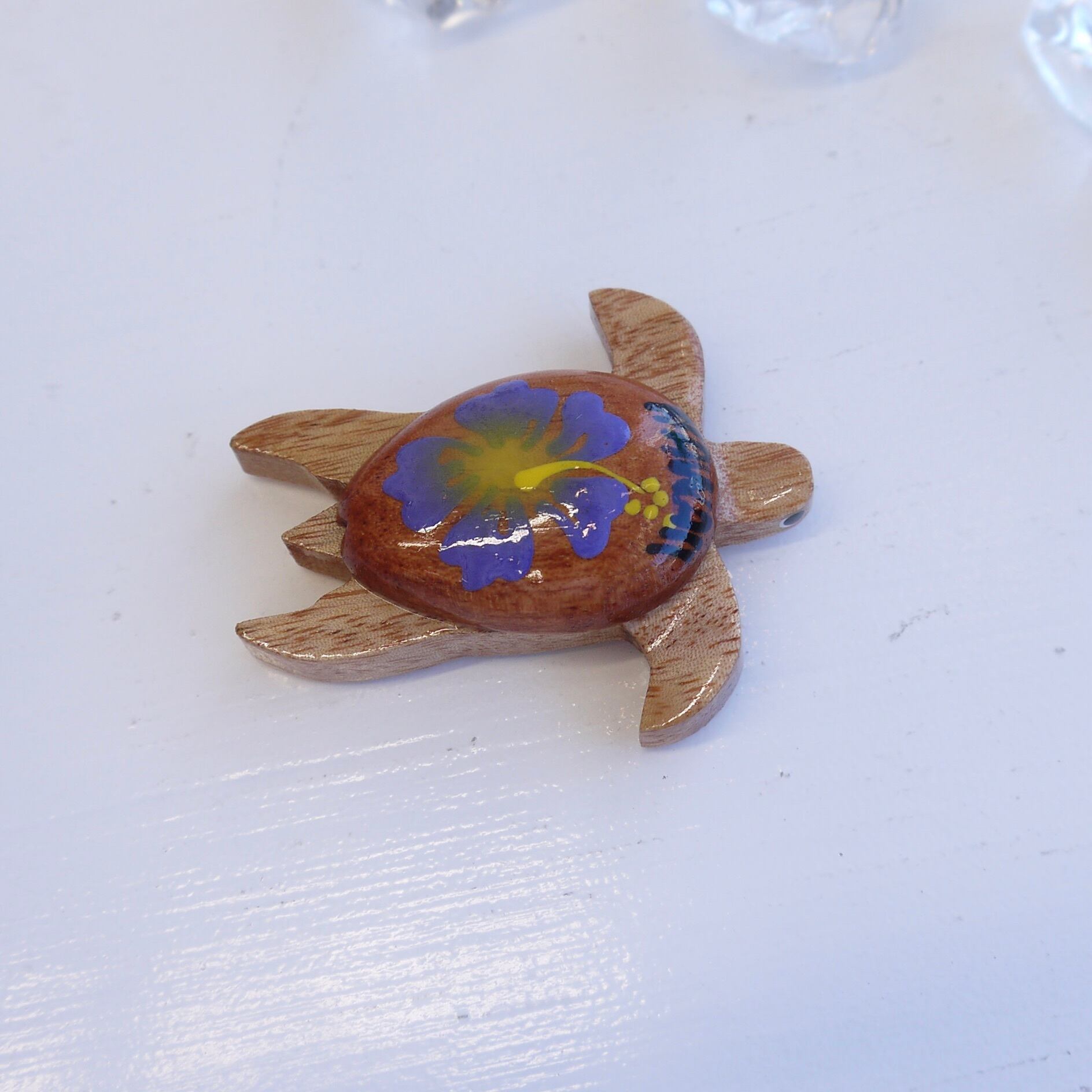 甲羅にハイビスカスのペイントがありお目目もあってかわいいマグネットです♡
