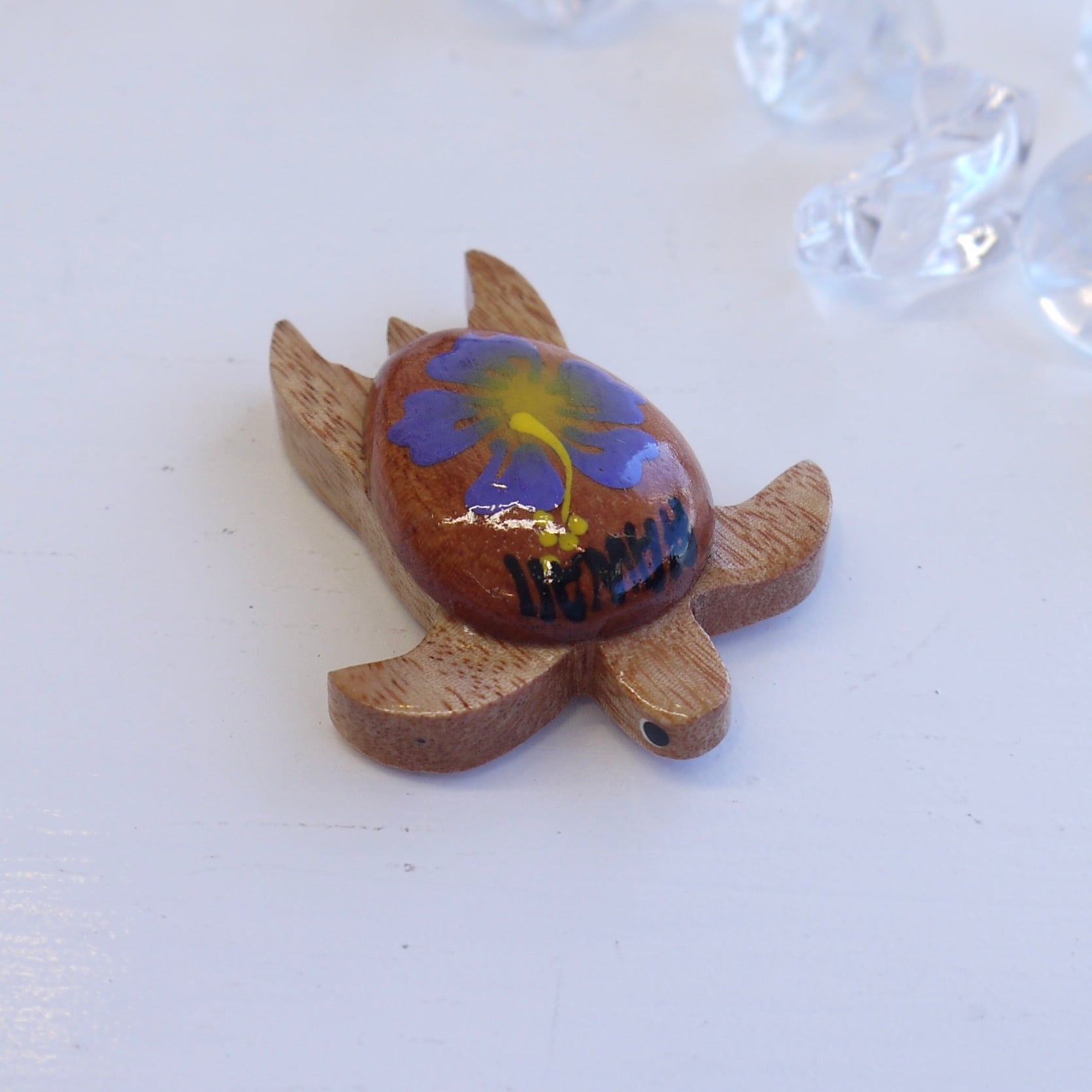 ★ハワイ直輸入★ハワイアンマグネット/ウッド ホヌ HONU/HAWAII/ハワイ磁石/キッチンマグネット/紫ペイントハイビスカス/WG-39