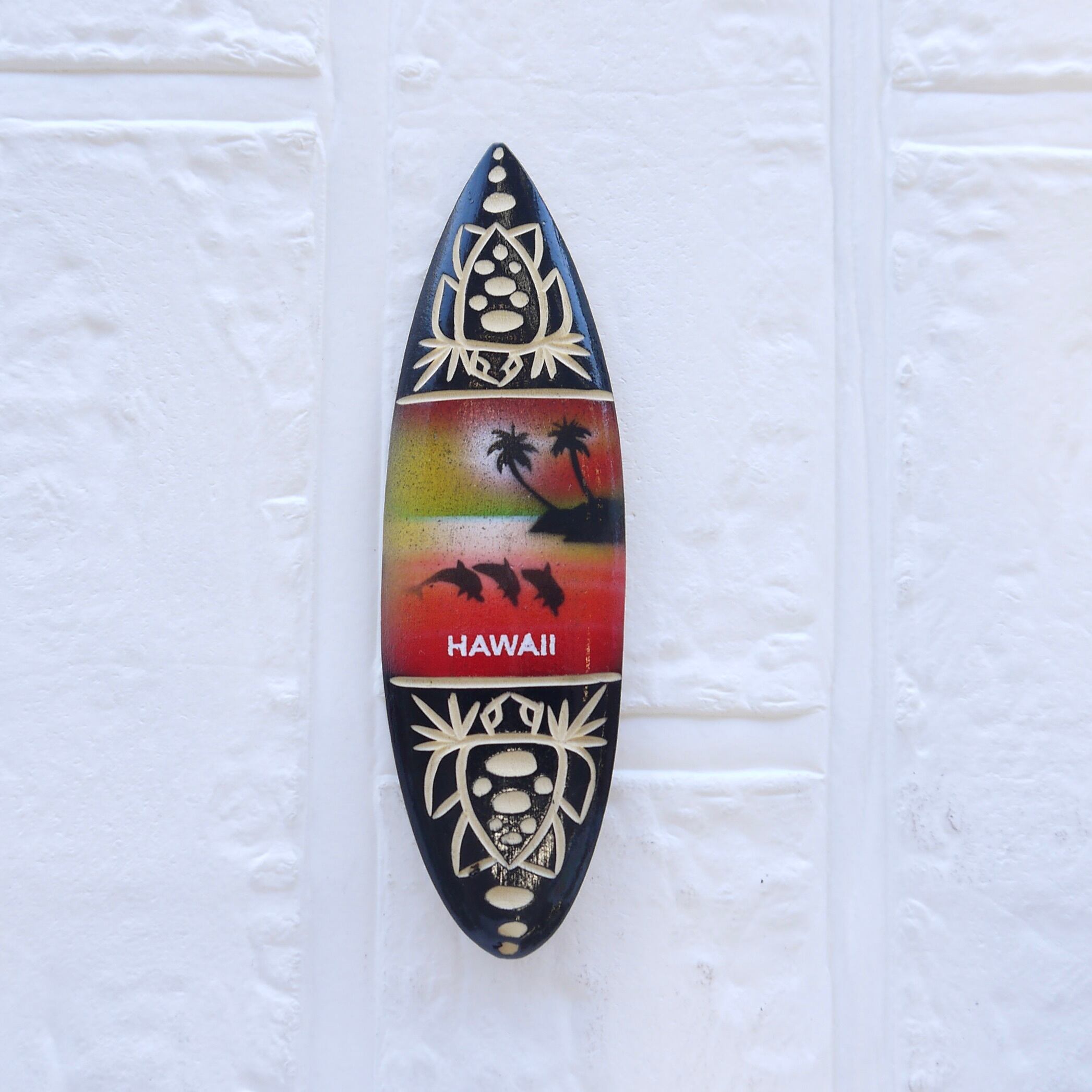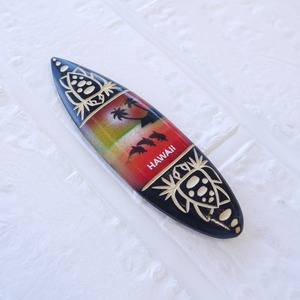 ★ハワイ直輸入★ハワイアンマグネット/スプレーアート ウッド サーフボード/HAWAII/キッチン/木彫り/カービング<ホヌ サンセット>WG-66