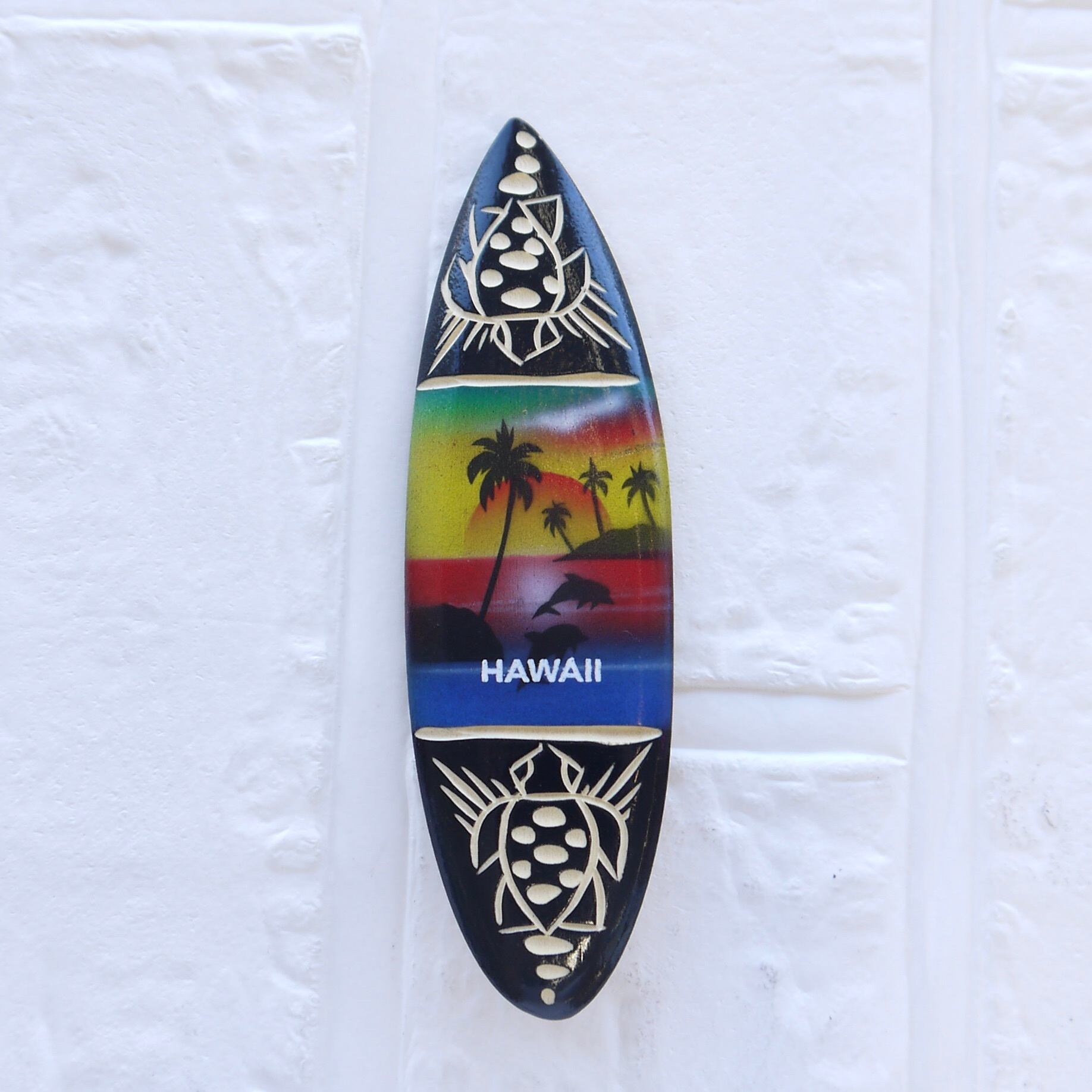 ★ハワイ直輸入★ハワイアンマグネット/スプレーアート ウッド サーフボード/HAWAII/キッチン/木彫り/カービング<ホヌ サンライズ>WG-61