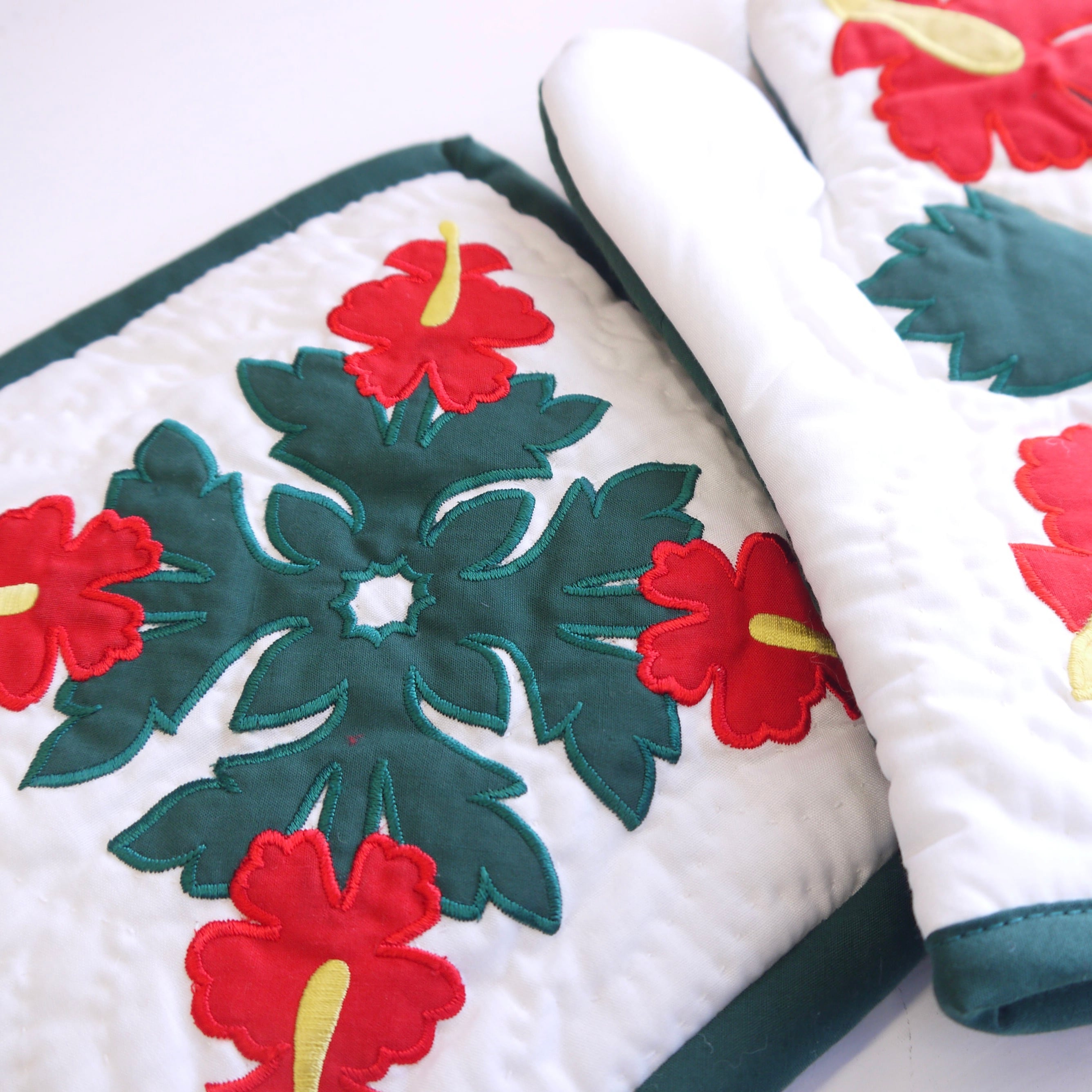 ハワイアンキルトの 鍋敷きとミトンのセット♡