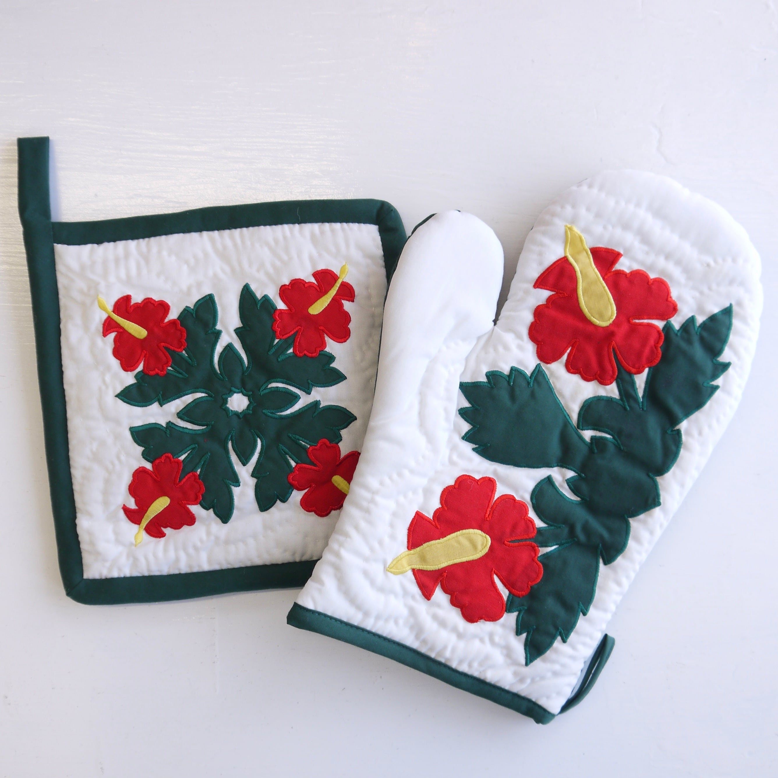 ★ハワイ直輸入★ハワイアンキルト ハイビスカス 鍋敷き&ミトンセット/キッチンセット<レッドハイビスカス>