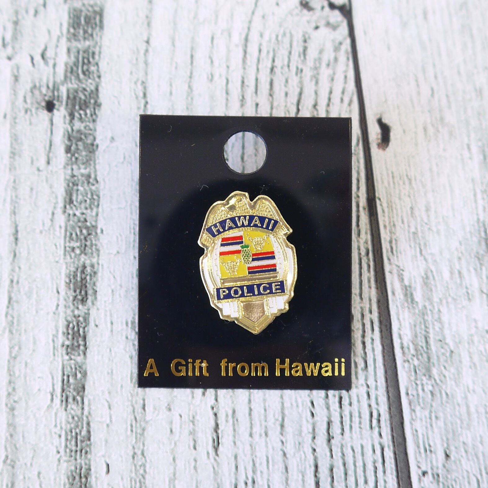 こちらはハワイのポリスバッジをモチーフにしたユニークなピンバッジです