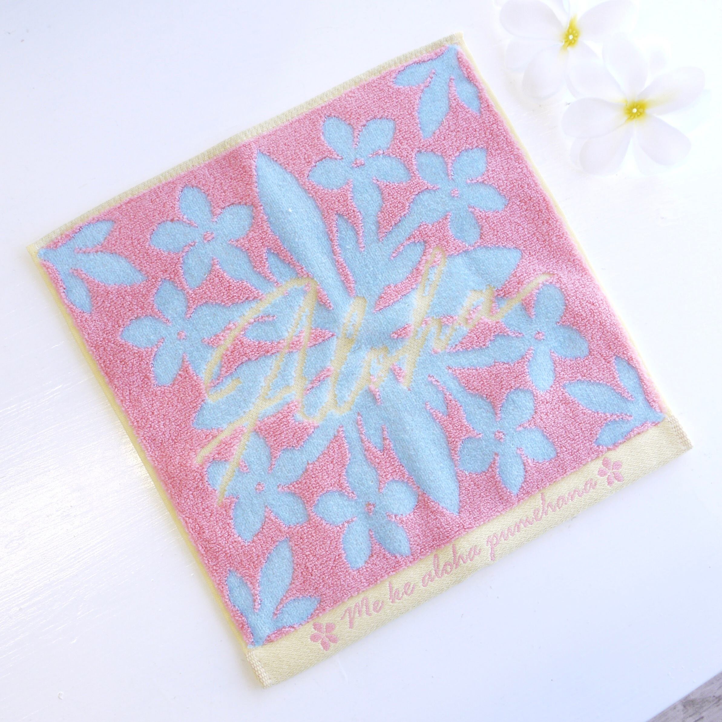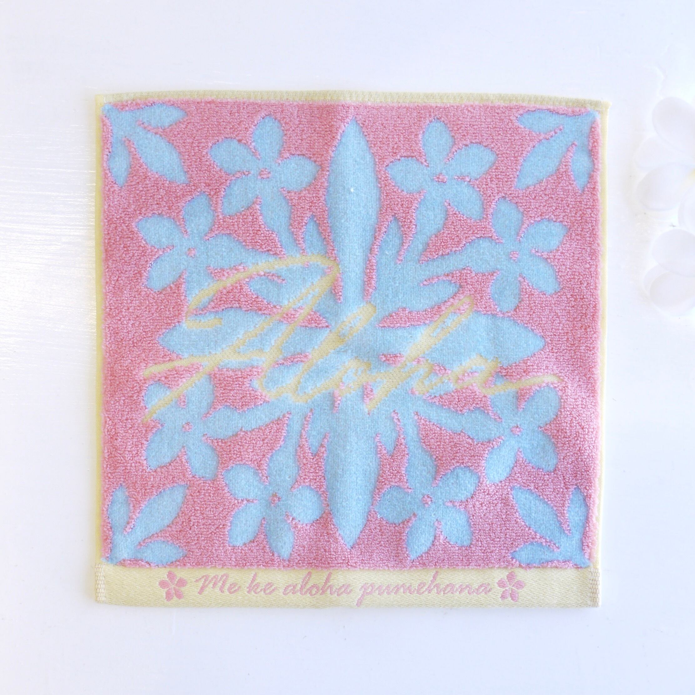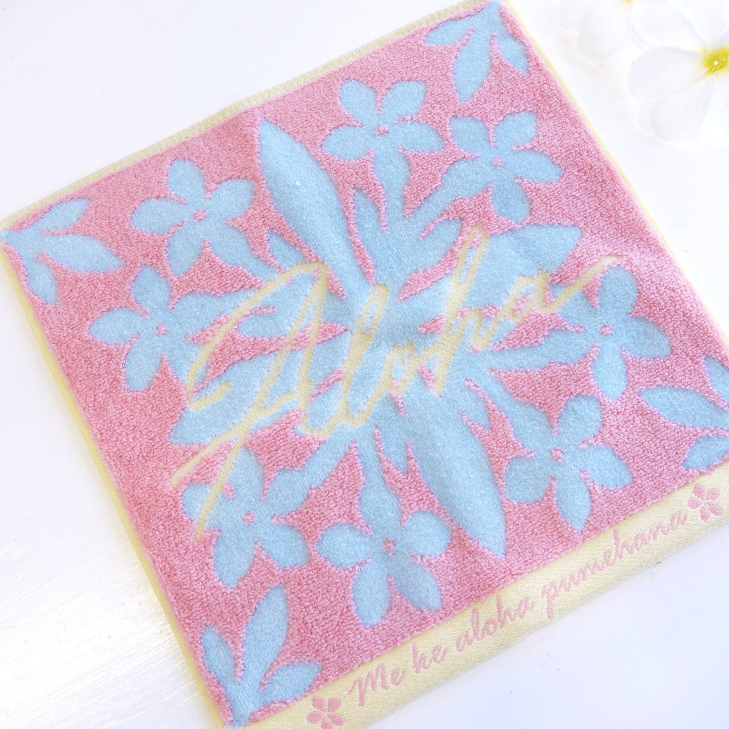 ★ハワイアン雑貨★ハワイアンキルト タオル/ハワイキルティタオル/コットン100%/ハンドタオル/プチギフト<ピンク/Aloha>