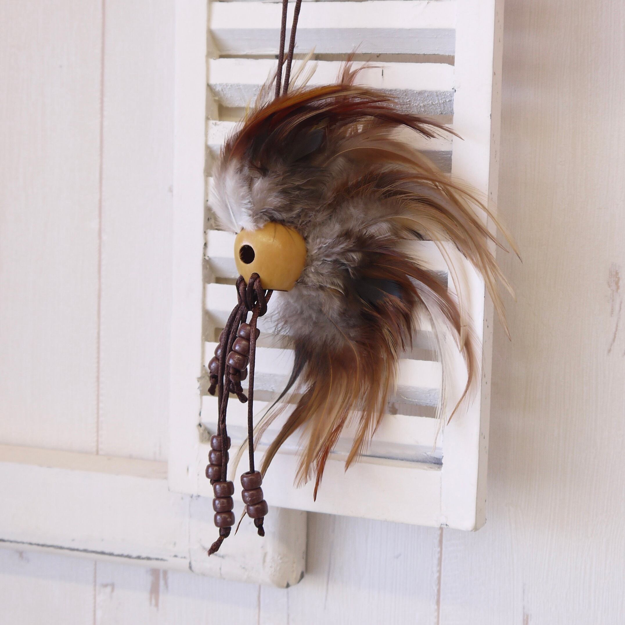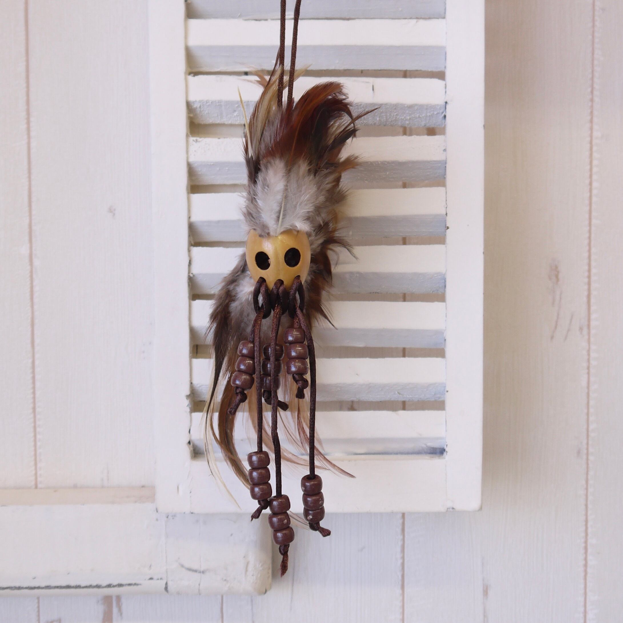 天然素材のハンドメイド品のため、1点づつ顔や羽の広がり方が異なります。