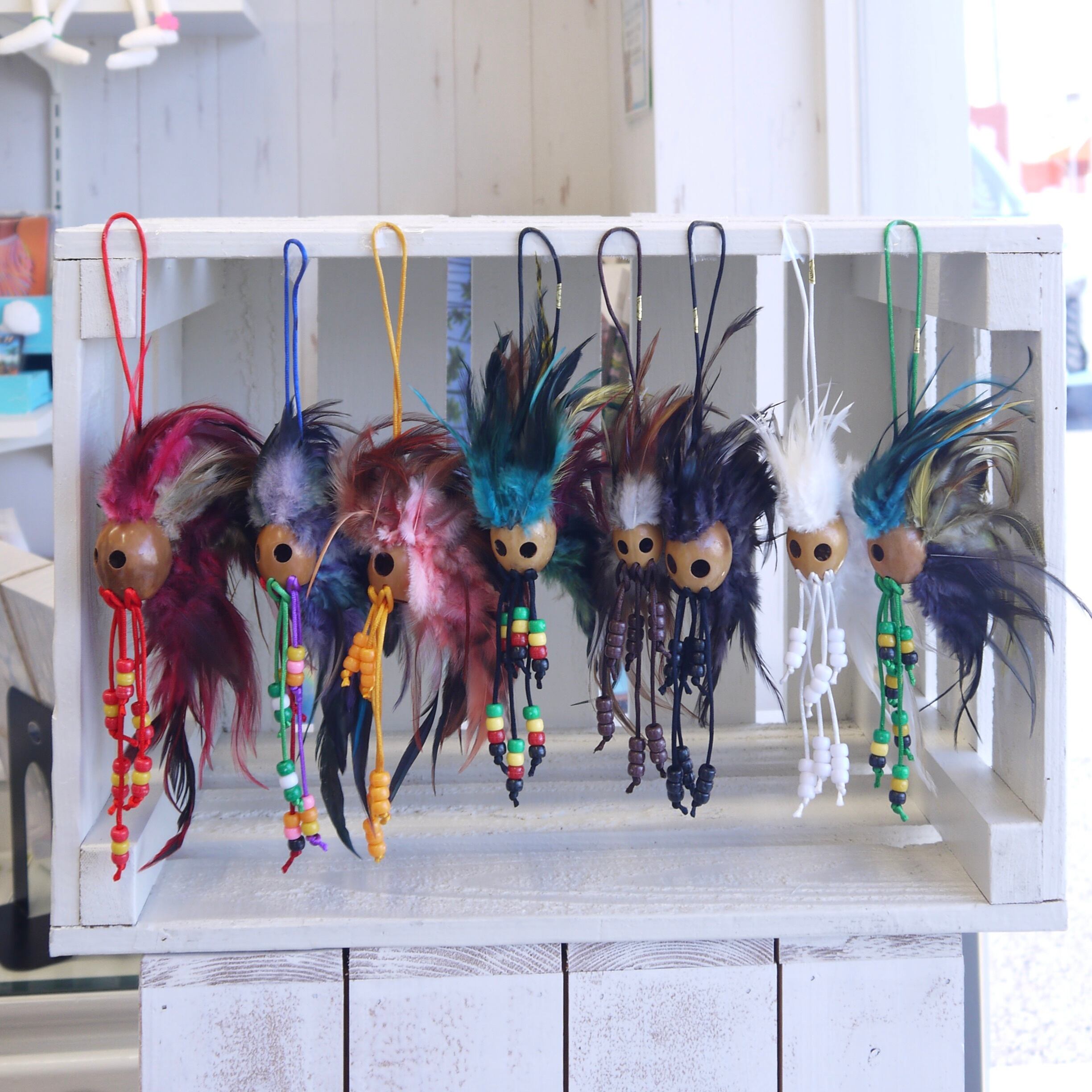 天然素材のハンドメイド品のため、1点づつ顔や羽の広がり方が異なります。