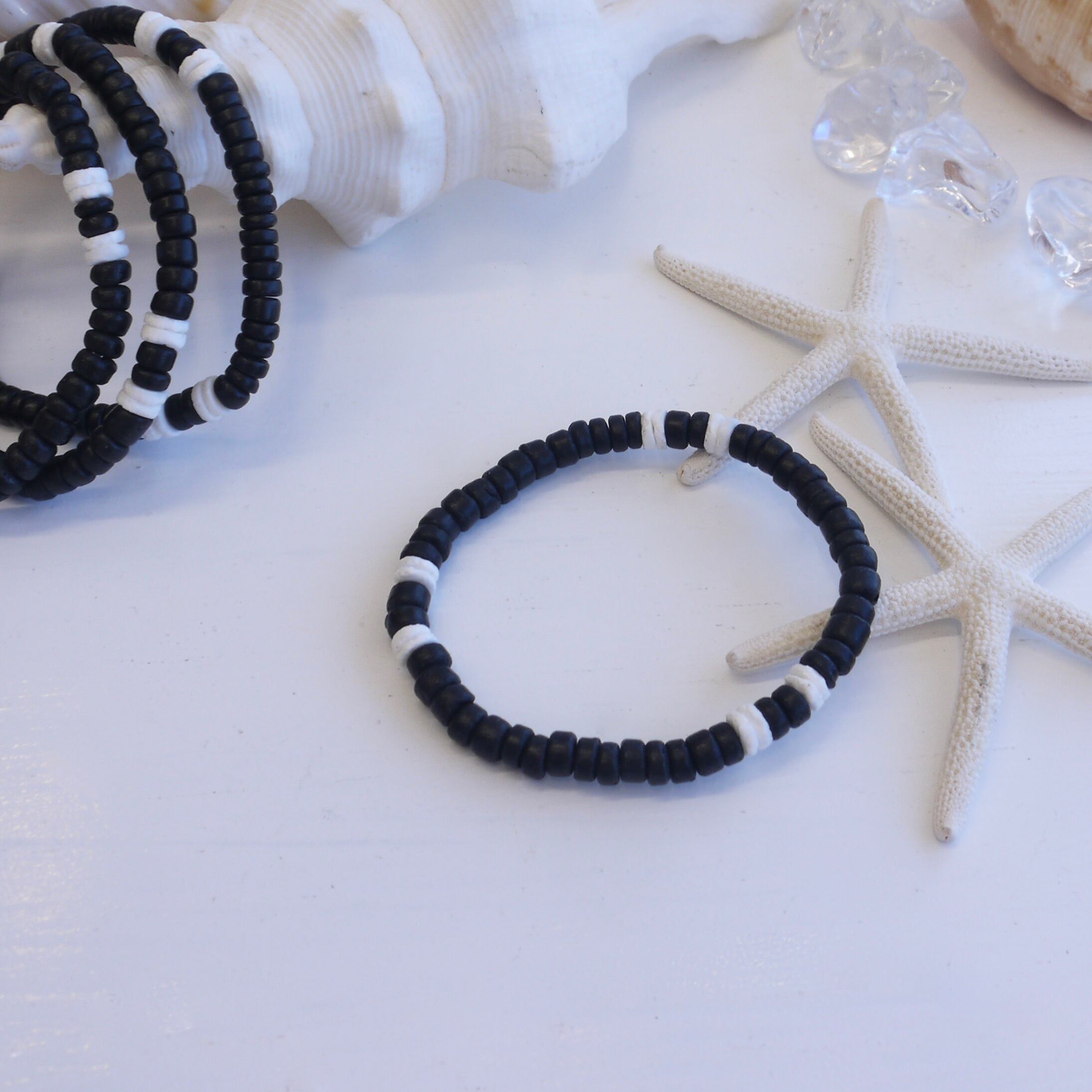ココナッツビーズ バングル ブラックブレスレット トコビーズ 天然素材 ナチュラルビーズ 夏ブレス HAWAII ハワイ直輸入<細 シェルMIX>