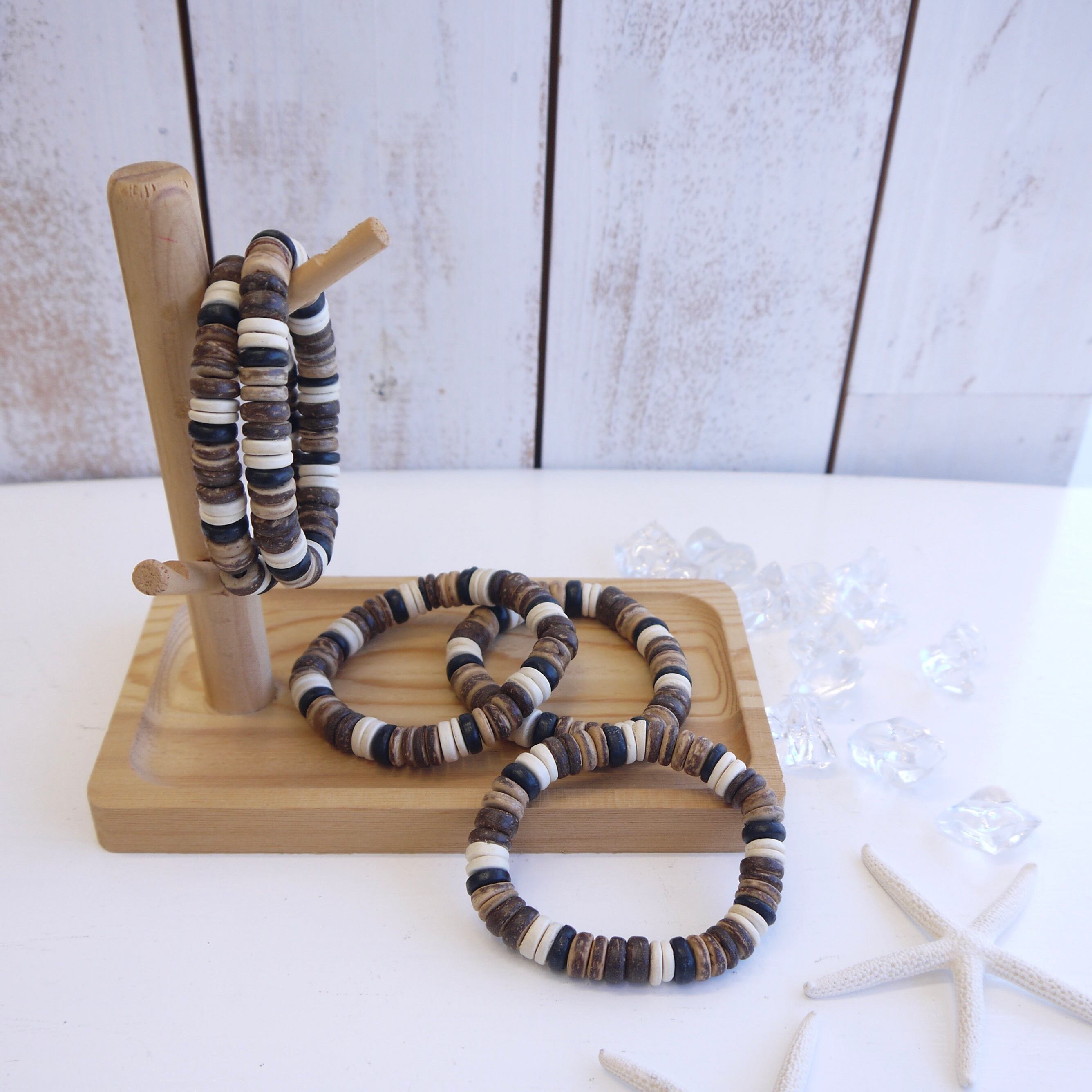 ココナッツビーズ バングル ウッドブレスレット トコビーズ 天然素材 ナチュラルビーズ 夏ブレス HAWAII ハワイ直輸入<太 MIX>