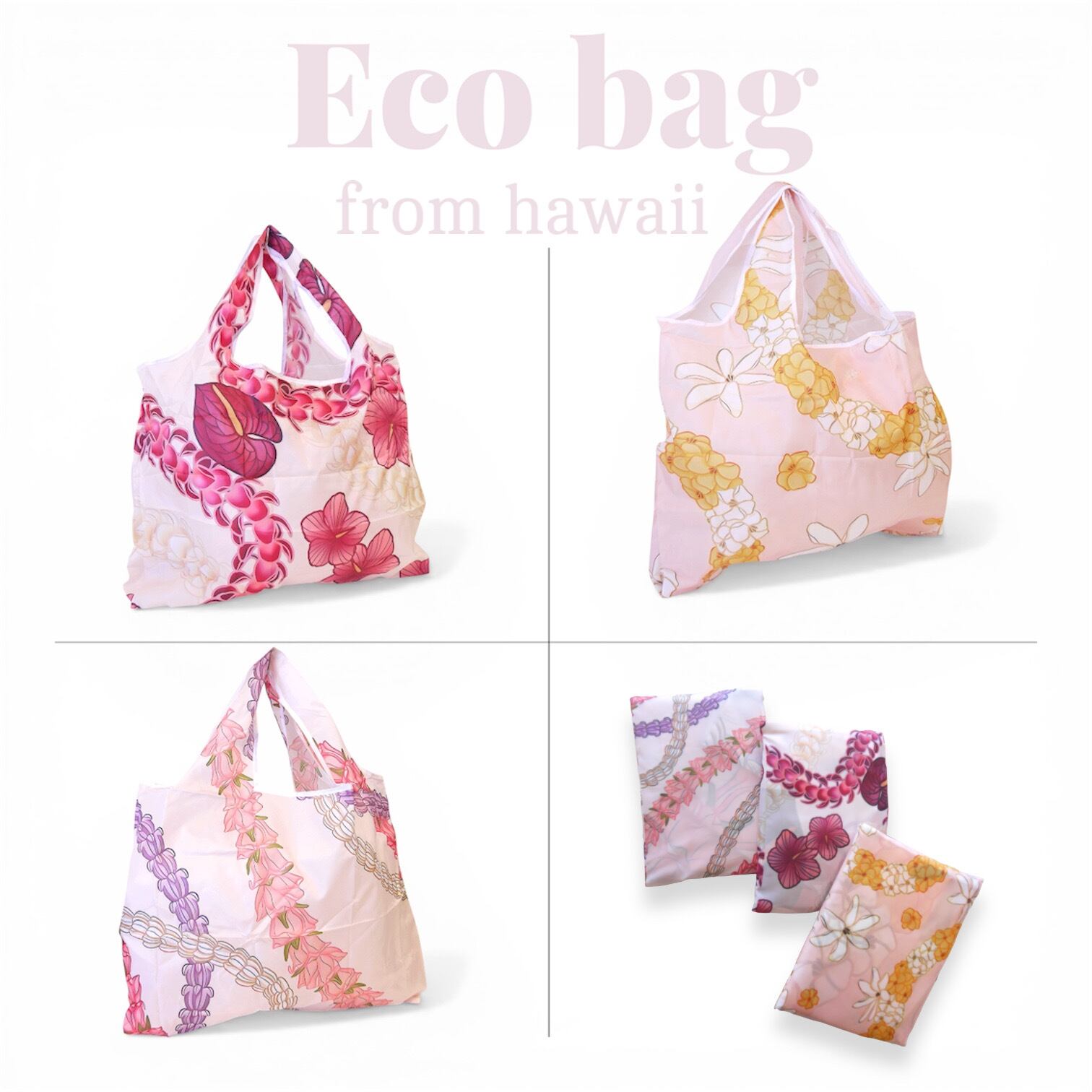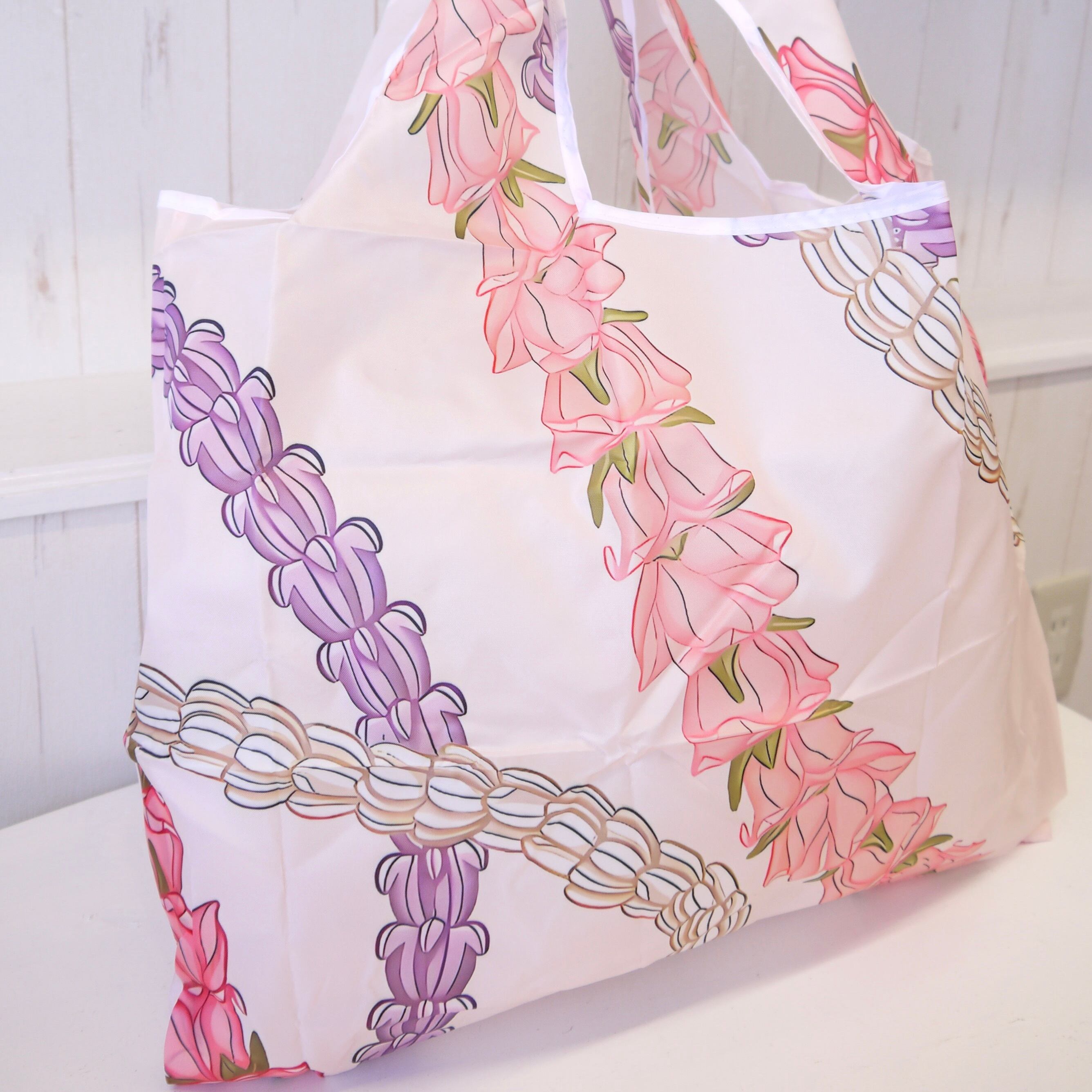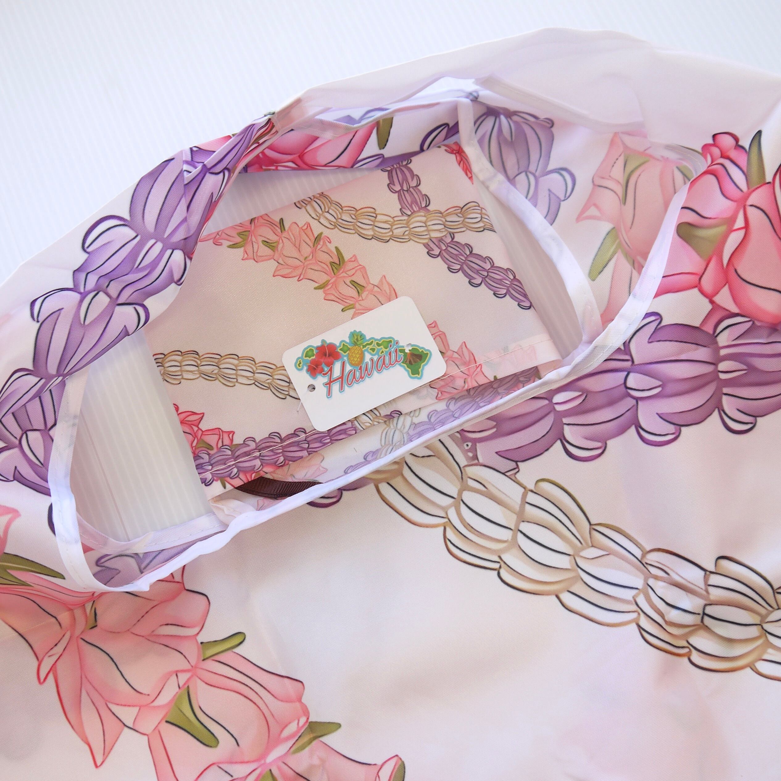ハワイ エコバッグ パッカブル 母の日 レイ柄 ピンク 軽量 薄型 上品 ギフト ハワ雑貨 フラ 花<ロケラニ&クラウンフラワー&ピカケレイ>