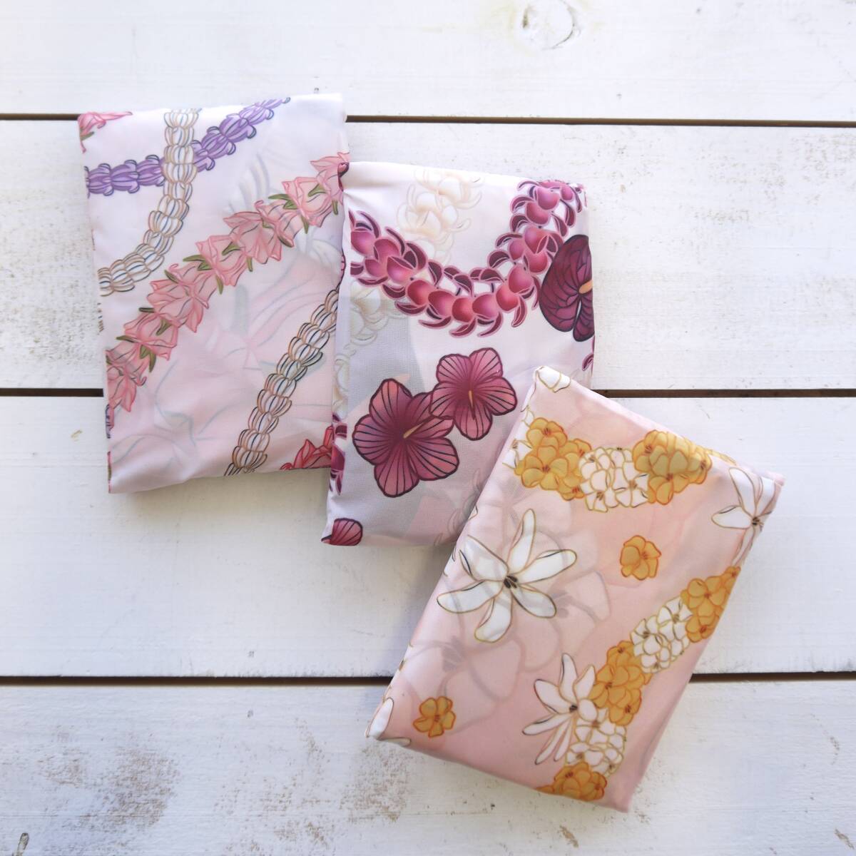 ハワイ エコバッグ パッカブル 母の日 レイ柄 ピンク 軽量 薄型 上品 ギフト ハワイ雑貨 フラ 花 かわいい<プルメリアレイ&ティアレ>
