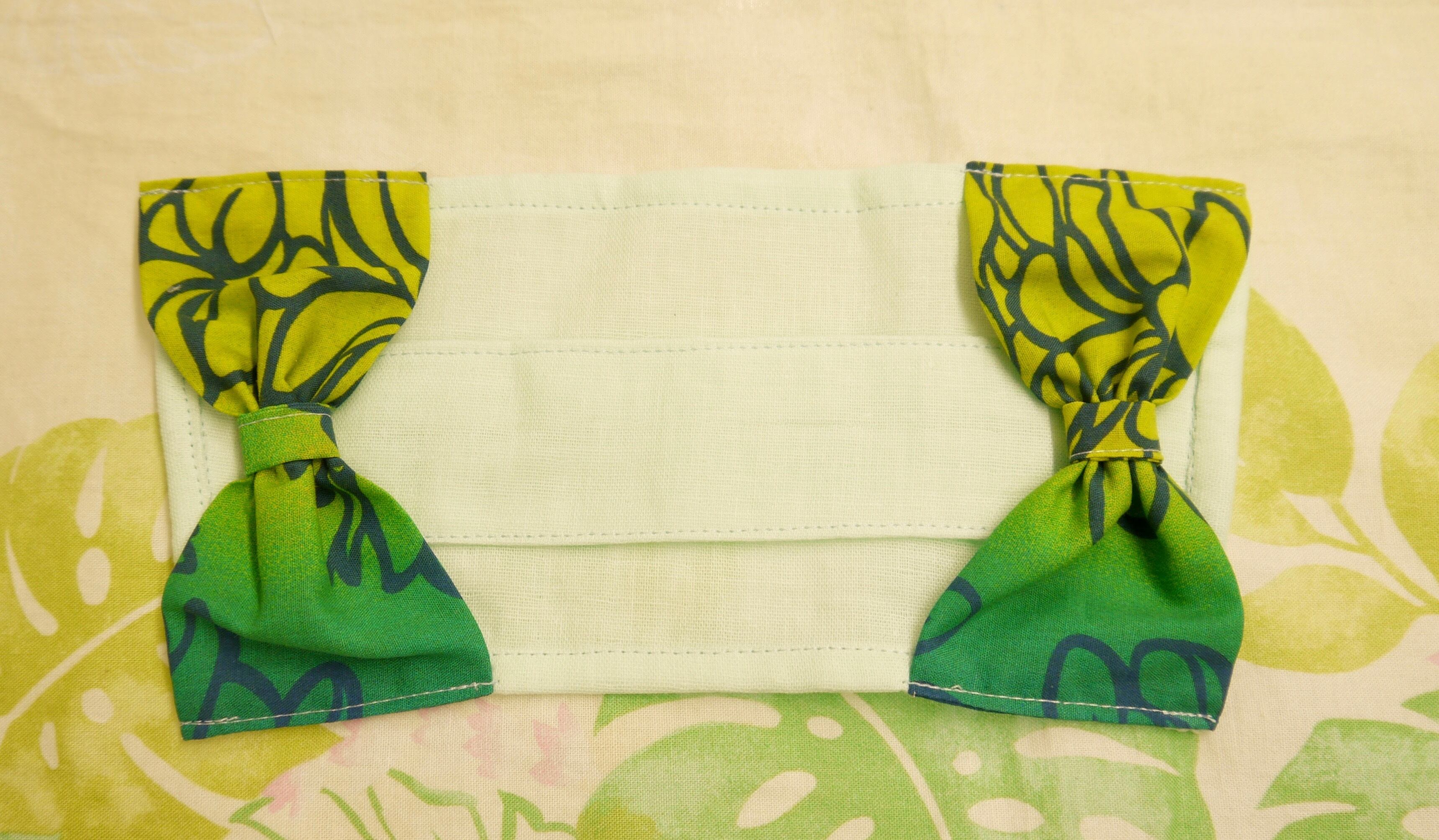 不織布マスクによる肌荒れ、汗でムレたりする不快感がなくなるように吸収の良いWガーゼを使用し、サイドには可愛いハワイアンファブリックでリボンをつけました♪