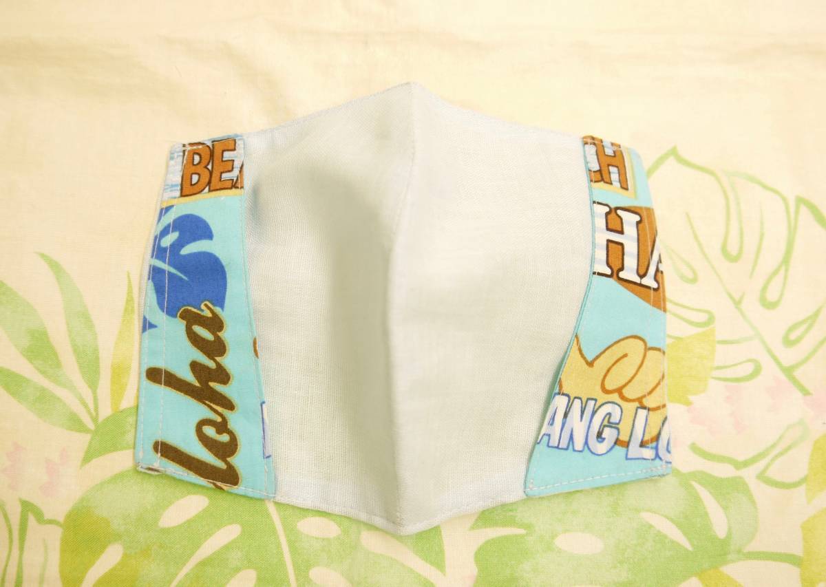 ★ハワイアンファブリック★不織布マスクが見える マスクカバー/ハワイアン柄 ガーゼ/春~夏/小顔効果<ブルー×シャカサイン>