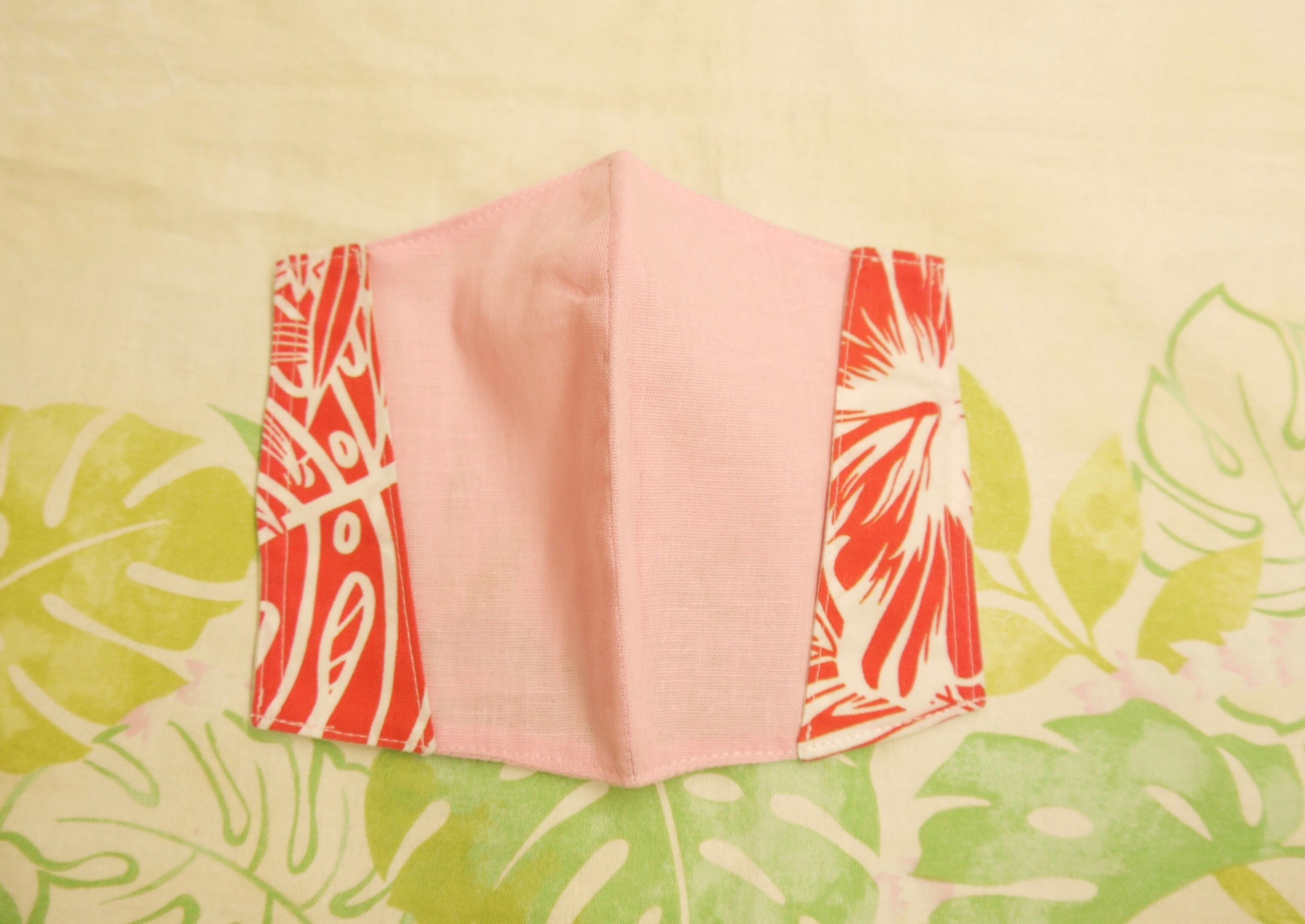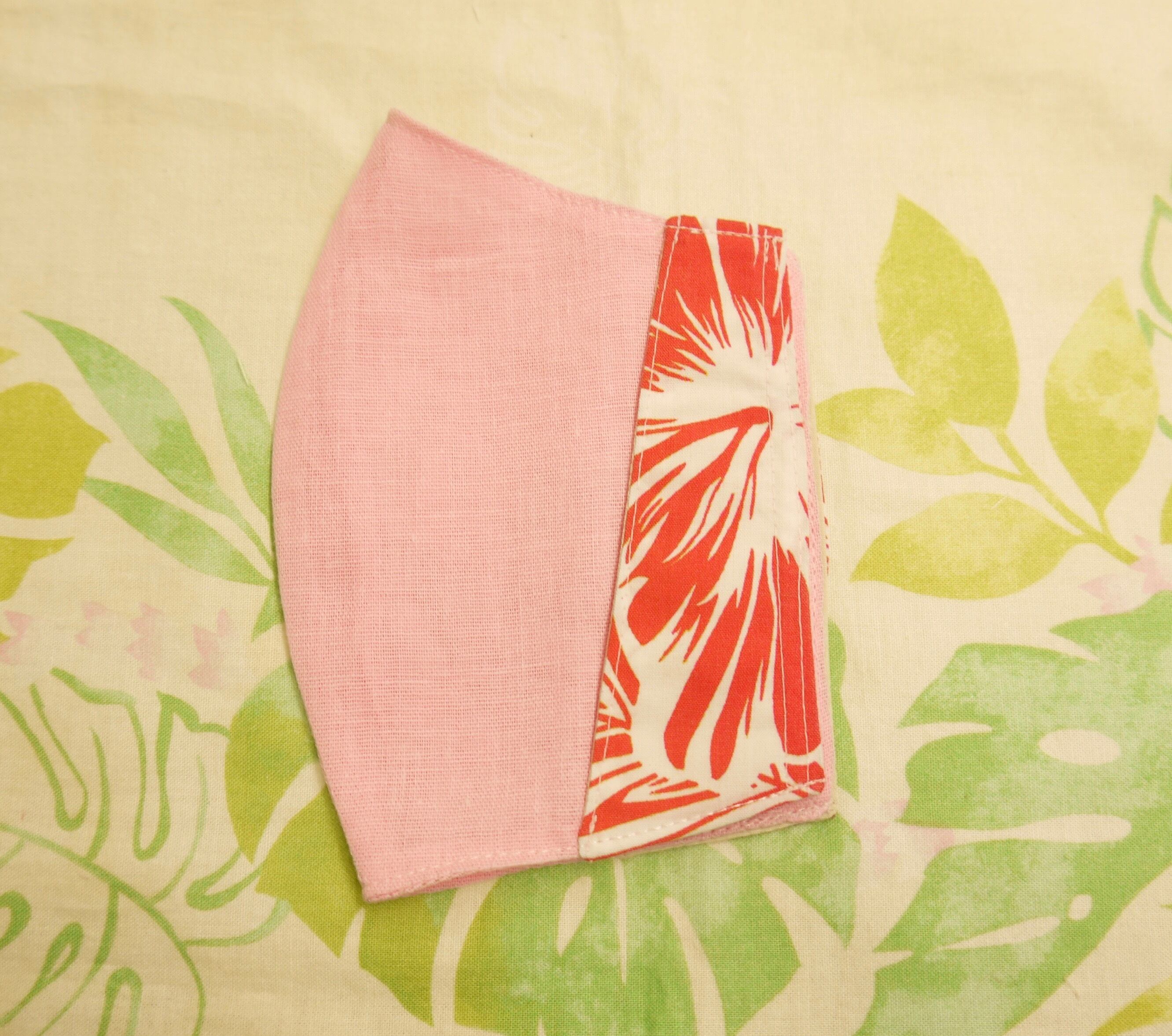 ★ハワイアンファブリック★不織布マスクが見える マスクカバー/ハワイアン柄 ガーゼ/春~夏/小顔効果<ピンク×レッドハイビスカス>
