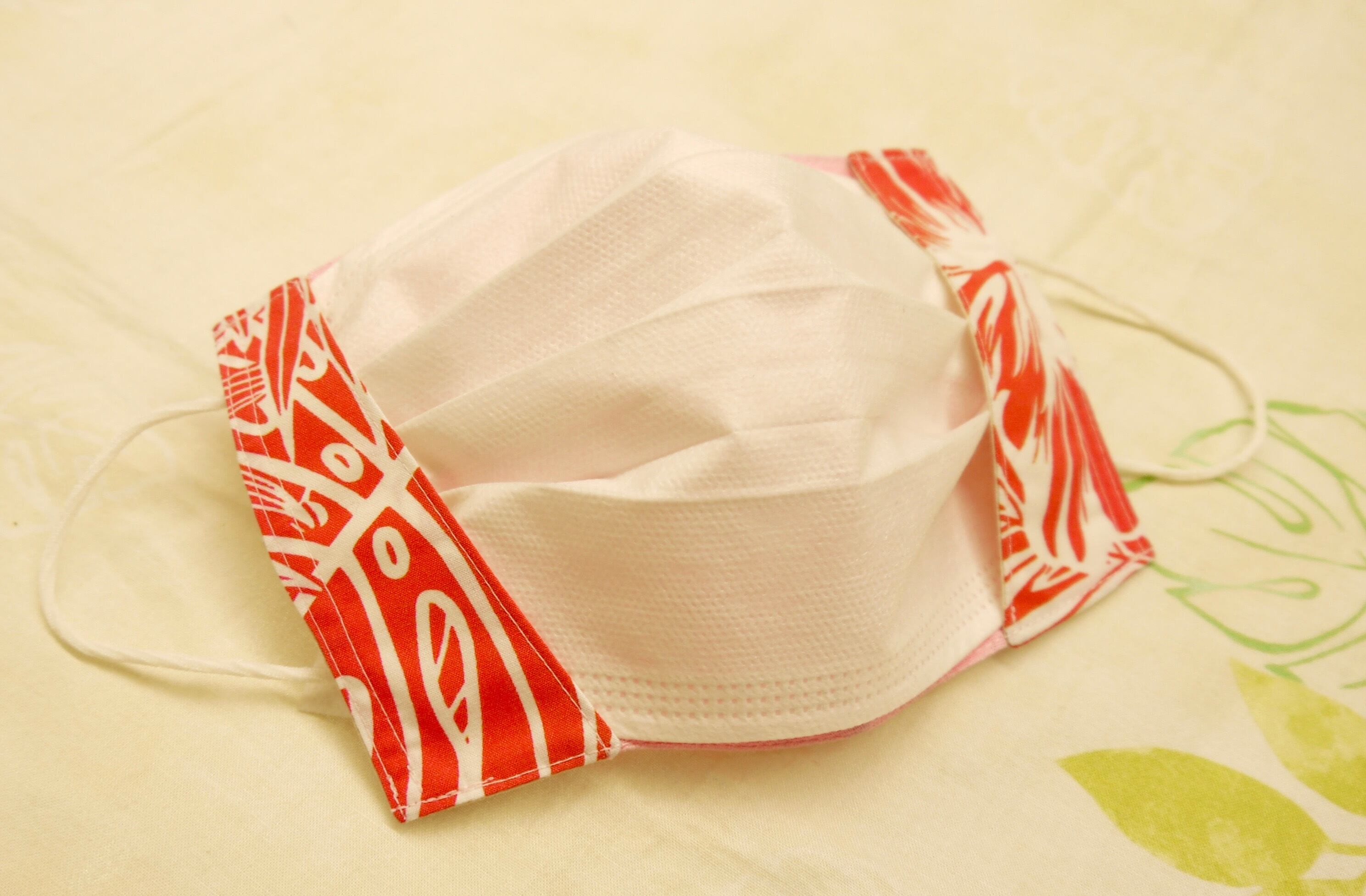 不織布マスクによる肌荒れ、汗でムレたりする不快感がなくなるように内側には吸収の良いガーゼを使用し、サイドには可愛いハワイアンファブリックを使用しました♪