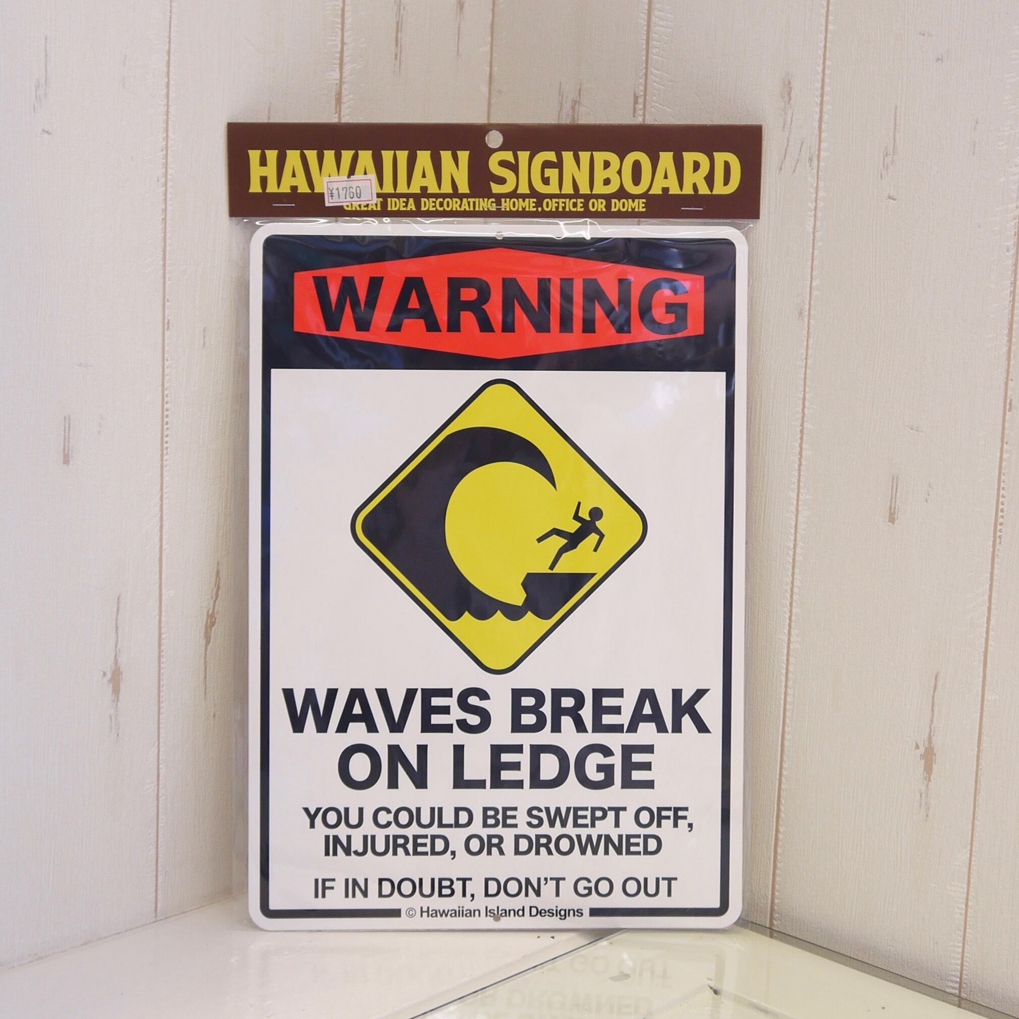 ★ハワイアン雑貨★ハワイ サインボード/注意喚起 看板/危険<WARNING/WAVES BREAK ON LEDGE>岩棚に波が被る