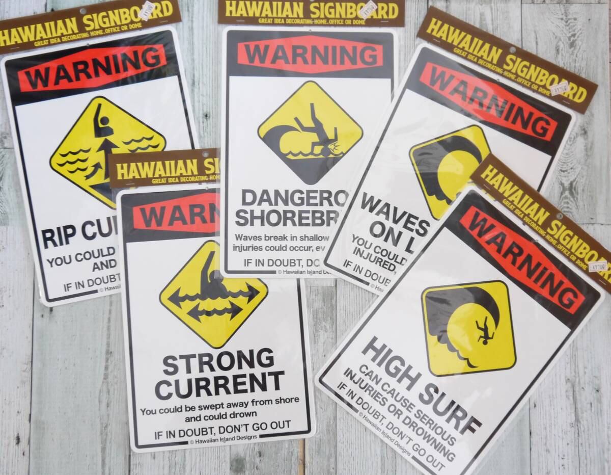 ハワイのビーチで見かけるWARNINGサインボードが登場しました♪