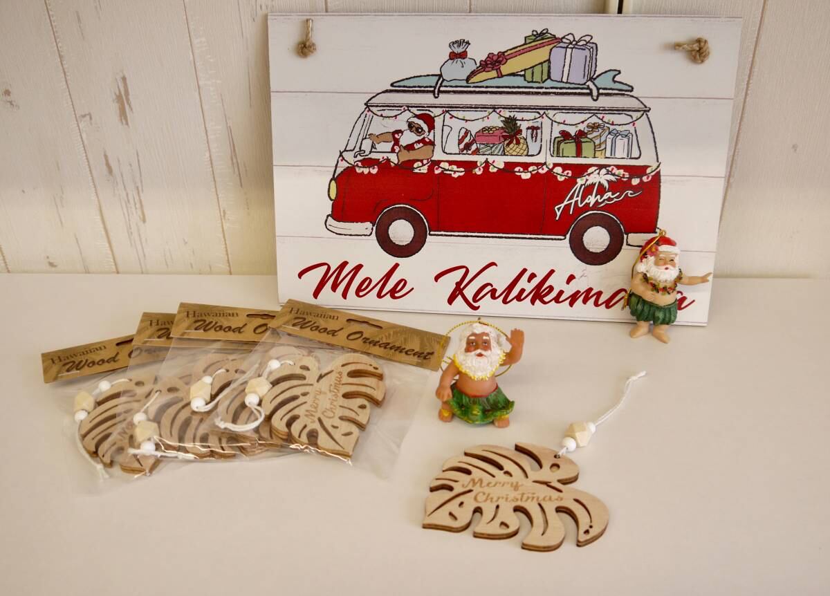 ★ハワイアン雑貨★ハワイアンクリスマス/Mele Kalikimaka/メレカリキマカ/ハワイアンウッド オーナメント/ギフト/HAWAII<モンステラ>