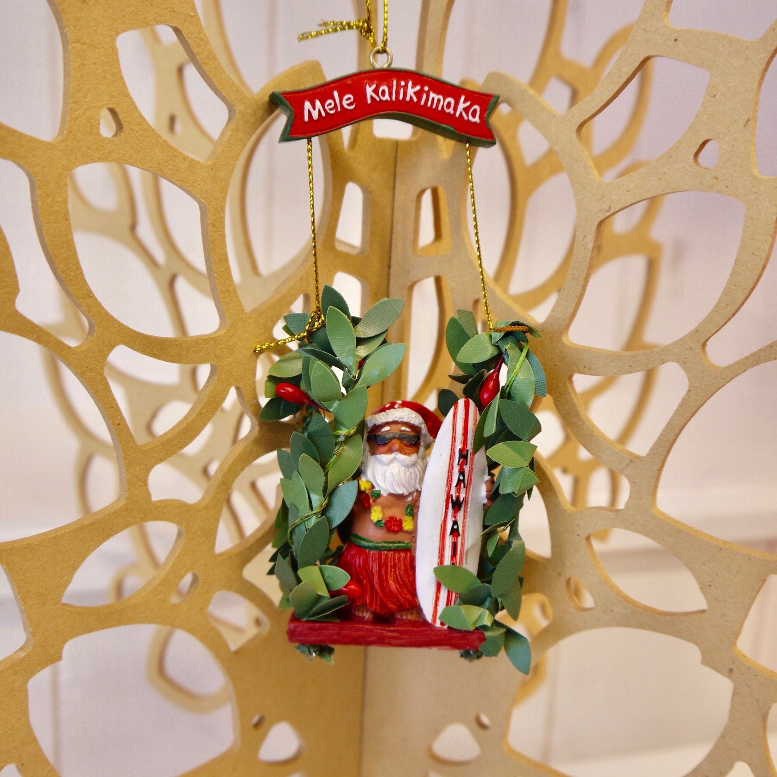 サンタさんのお茶目な表情がかわいいハワイアン クリスマス オーナメントです♡