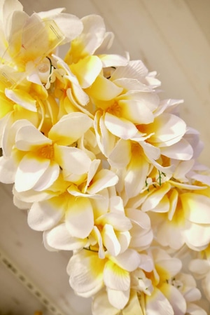 白に黄色の定番のプルメリアで一番ポピュラーなレイです
