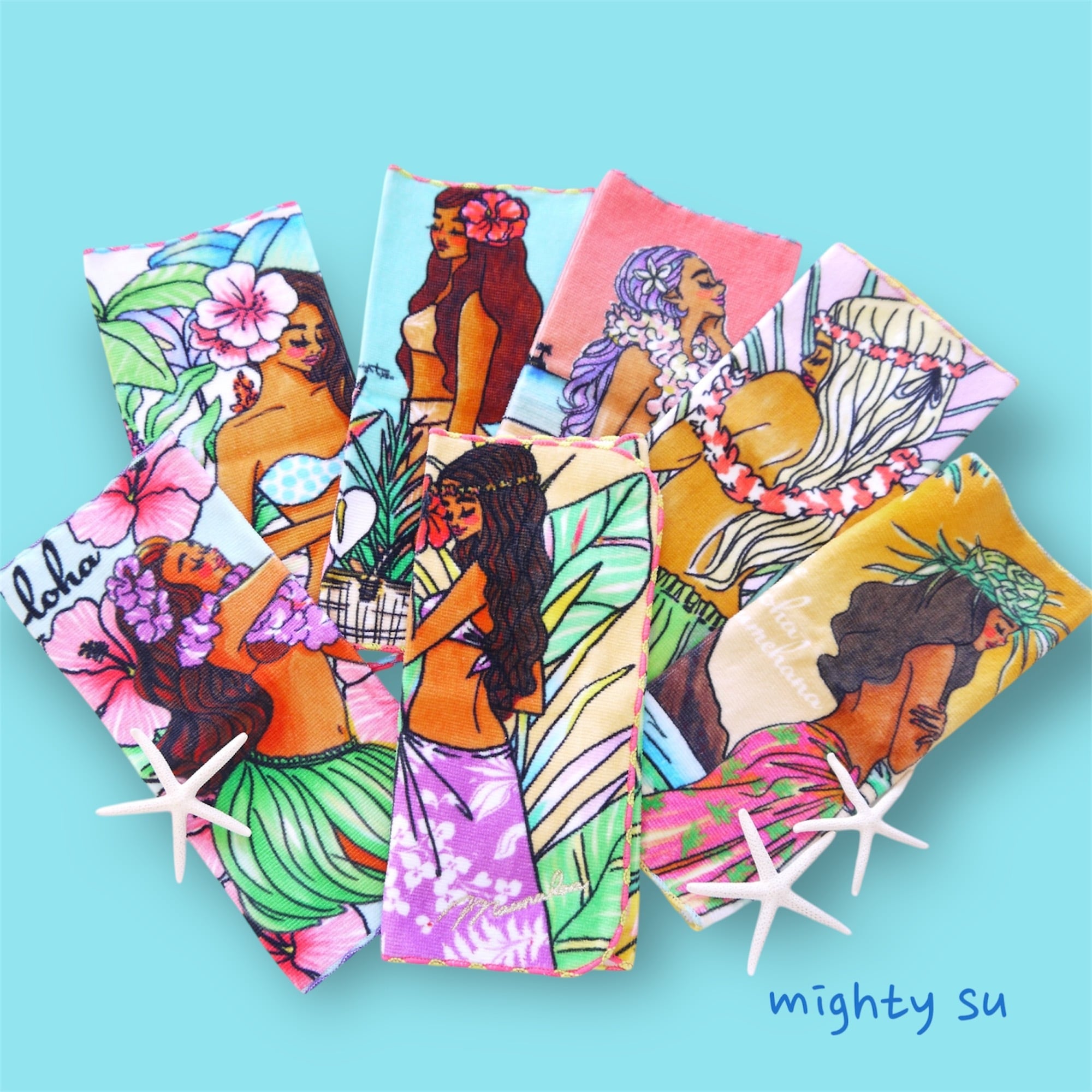 イラストレーター マイティ・スーが描くハンドタオル☆トロピカルガールが可愛くて色合いも綺麗です♡