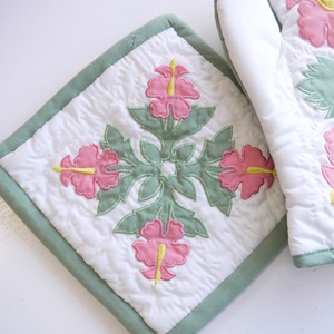 ハワイアンキルトの 鍋敷きとミトンのセット♡