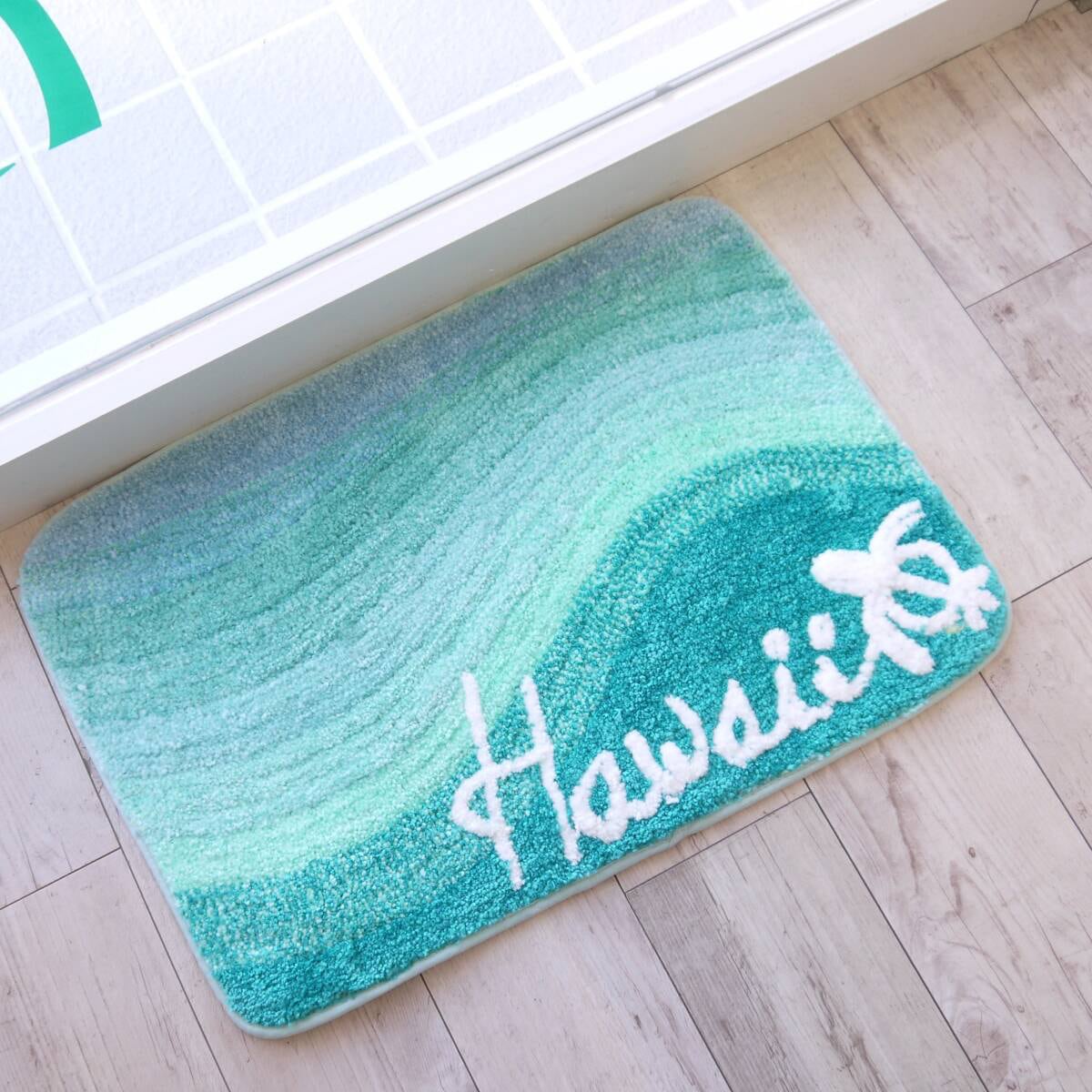 ★ハワイアン雑貨★グラデーション マット/海/波/ビーチ/ALOHA/パイル/インテリアマット/玄関マット/バスマット<MINT/ミント>