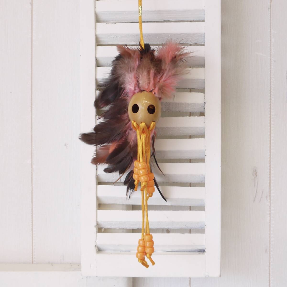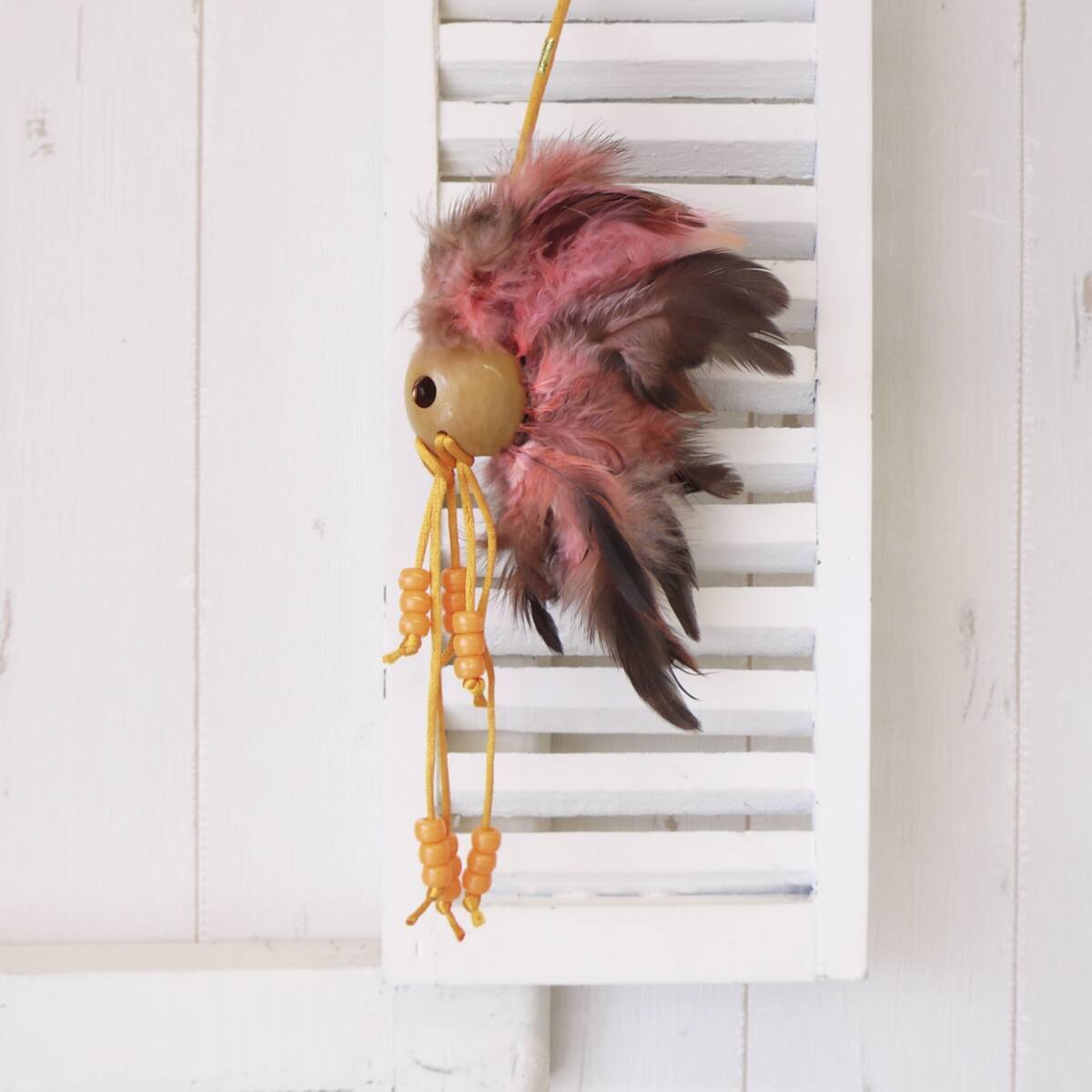 天然素材のハンドメイド品のため、1点づつ顔や羽の広がり方が異なります。
